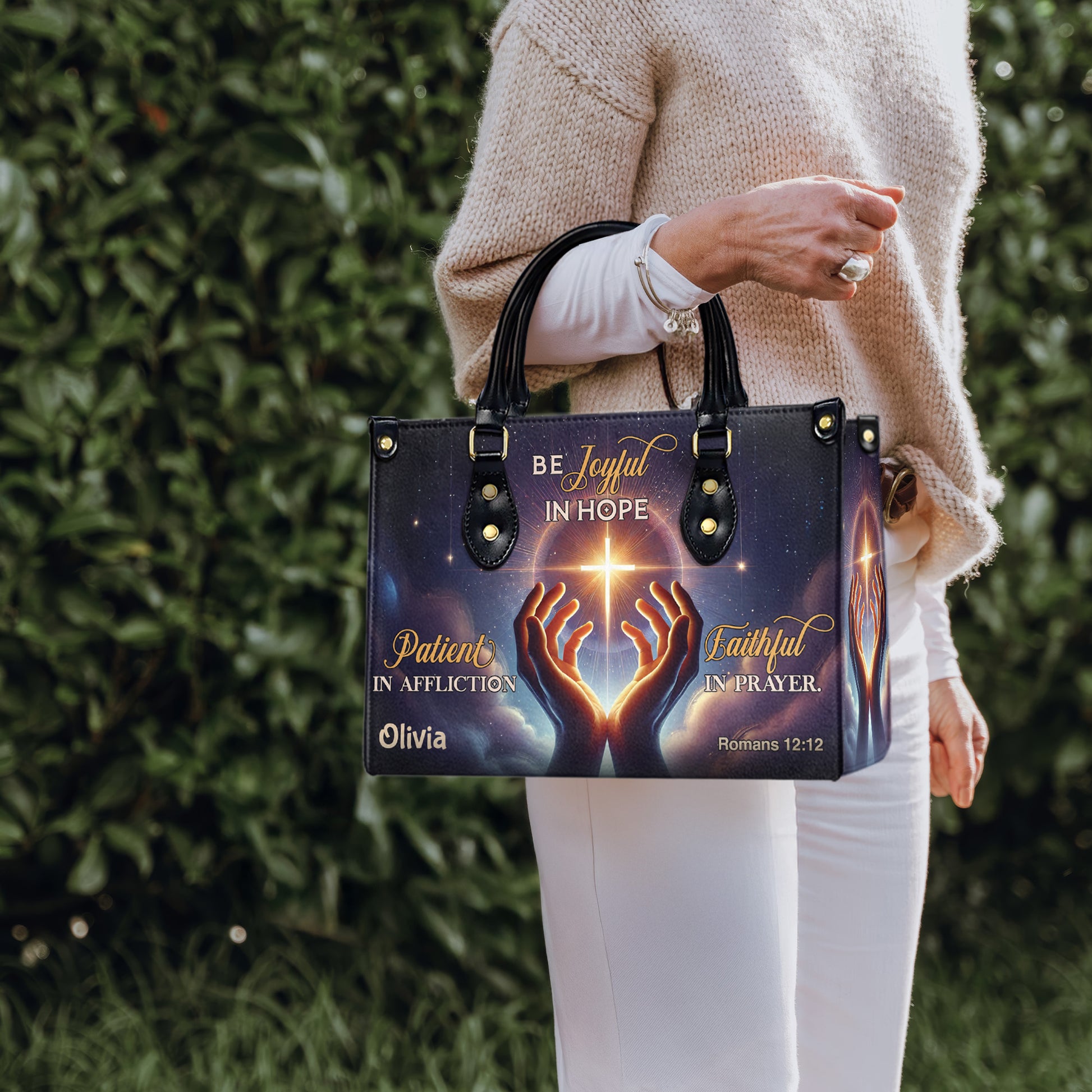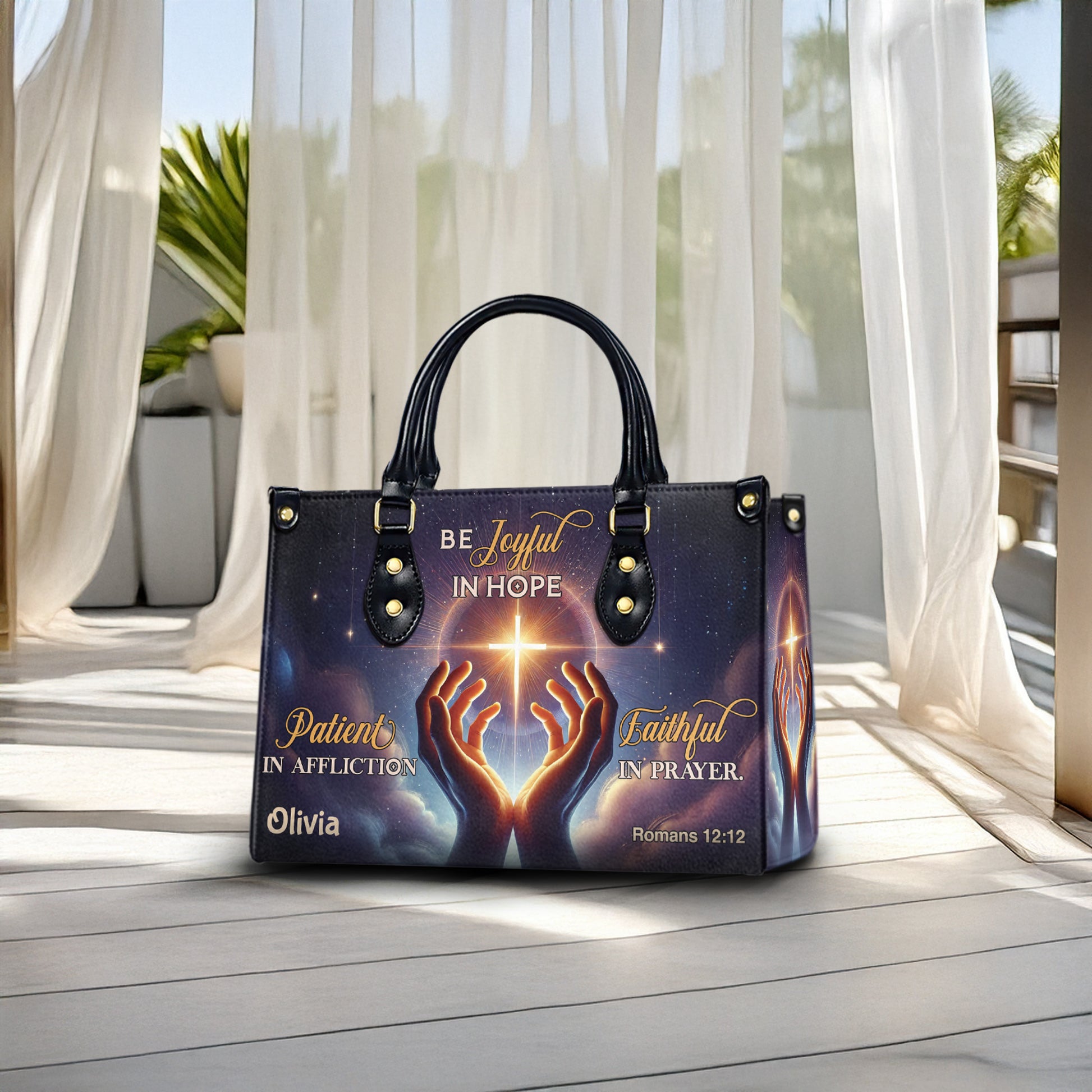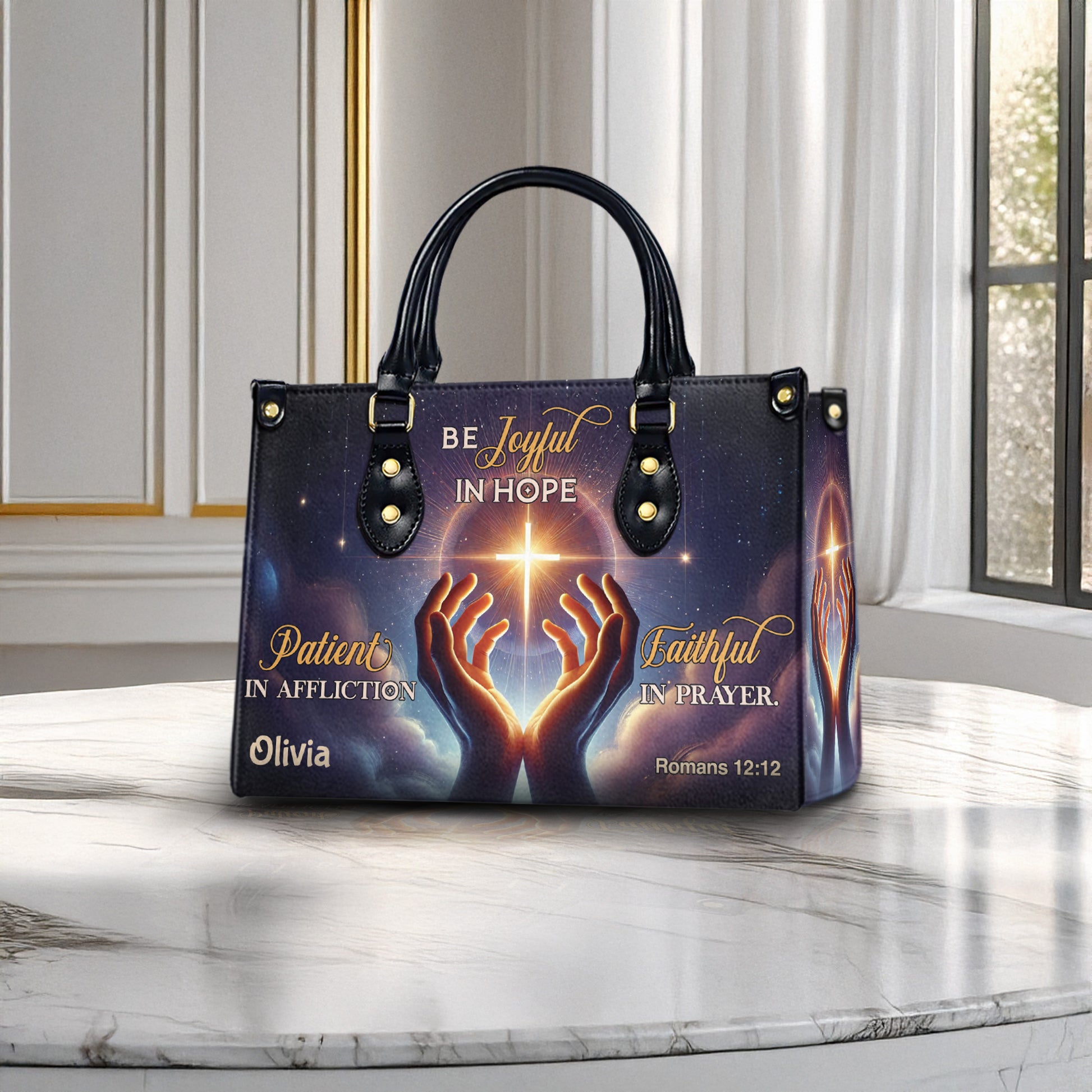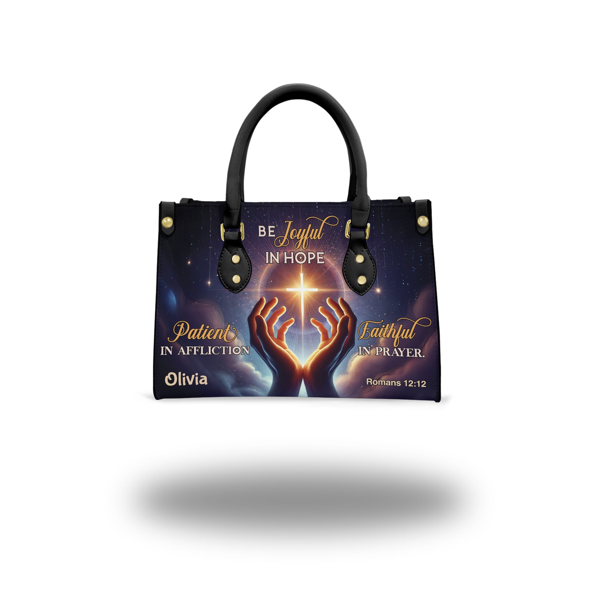 HB57-personalized christian handbag with romans 12 12 verse, custom name prayer purse, joyful in hope faith gift for women