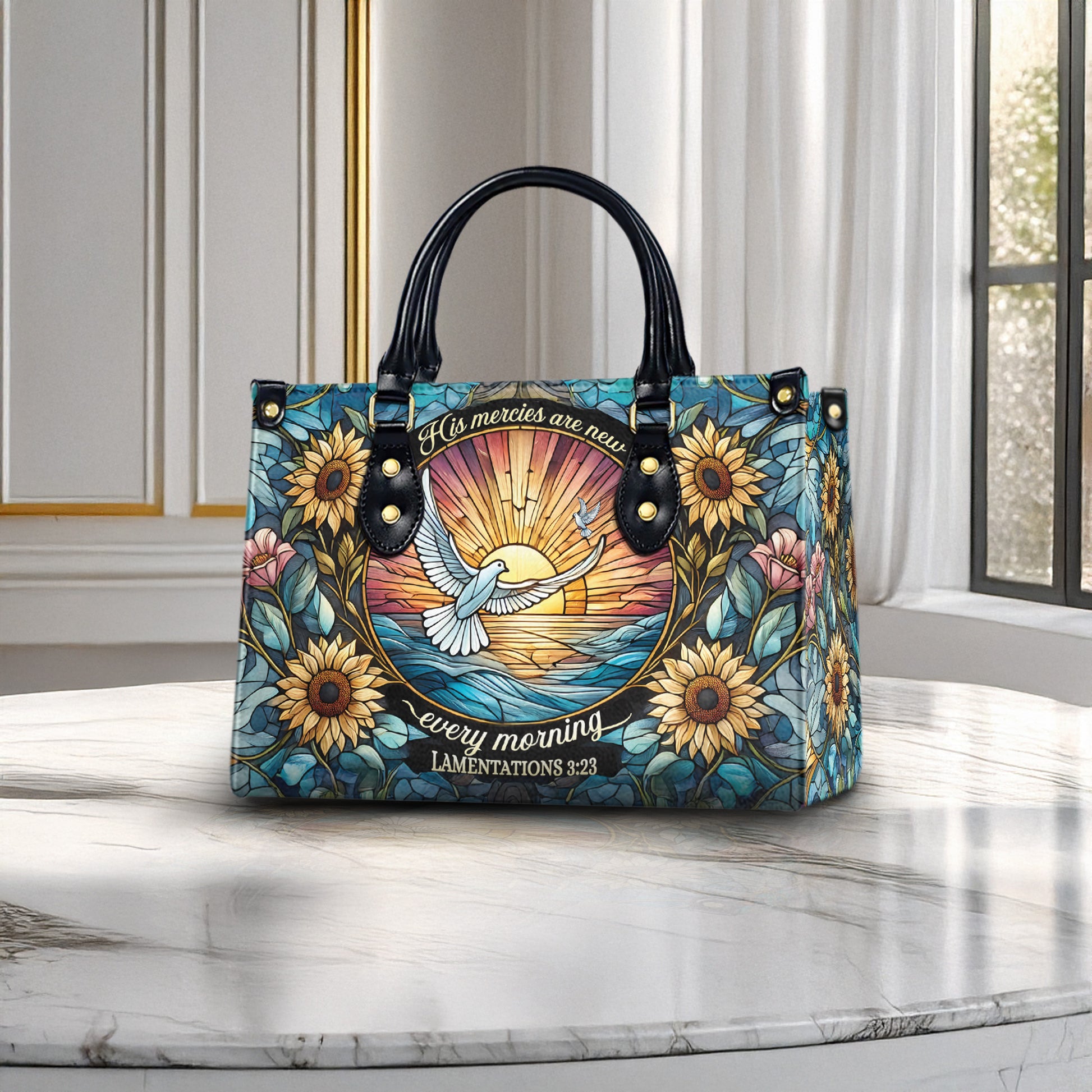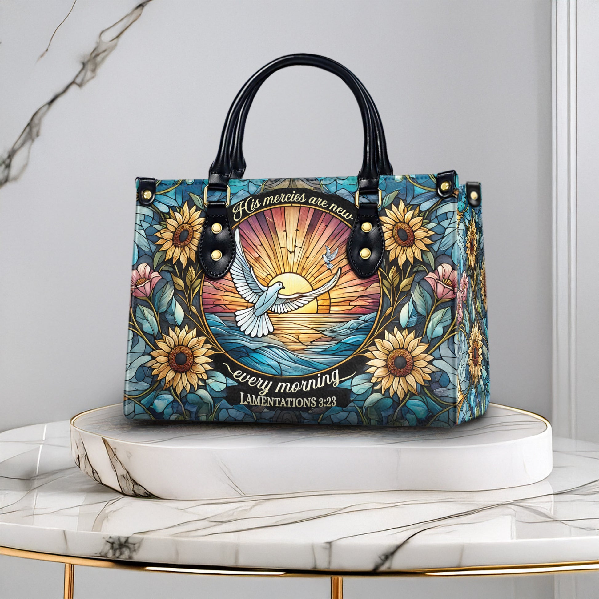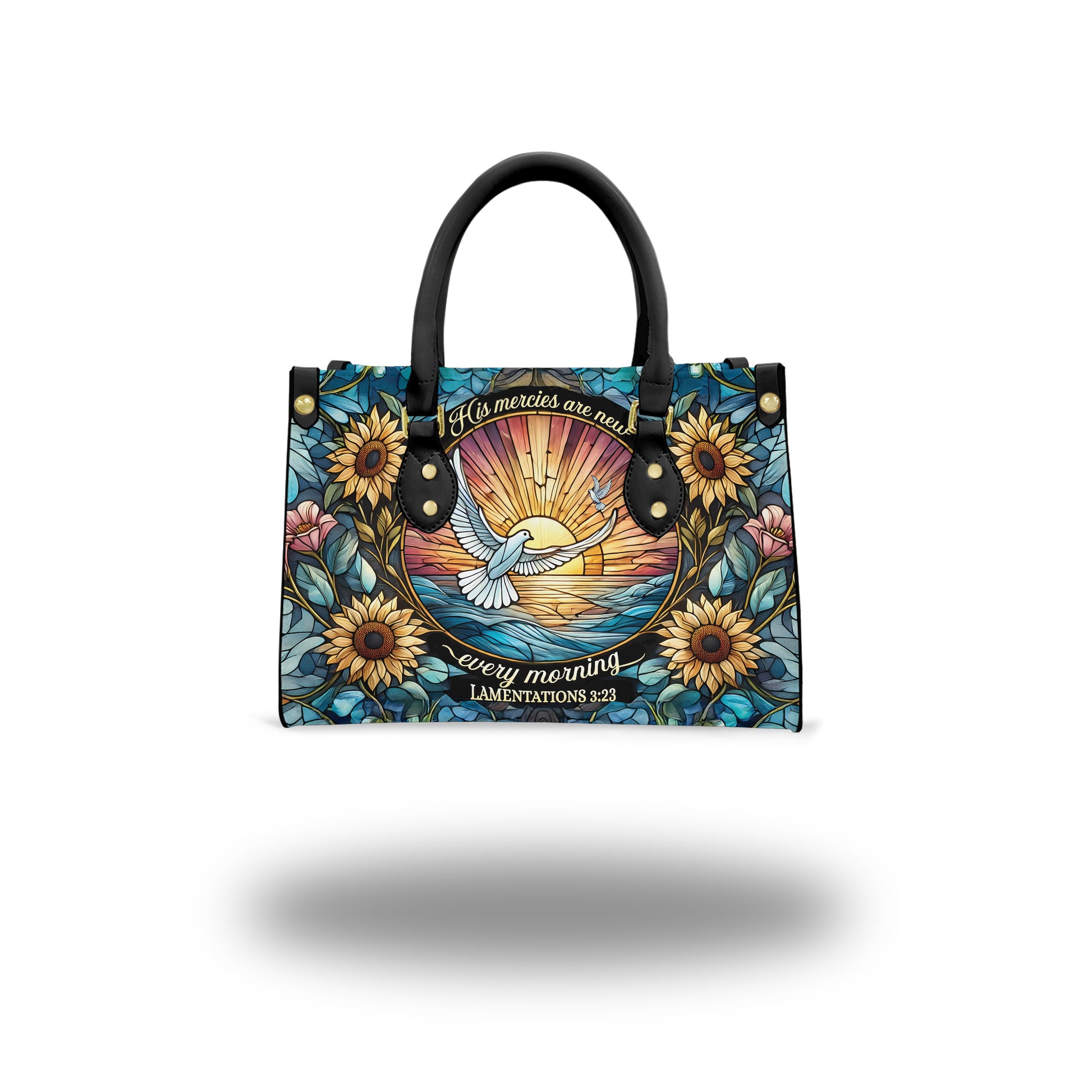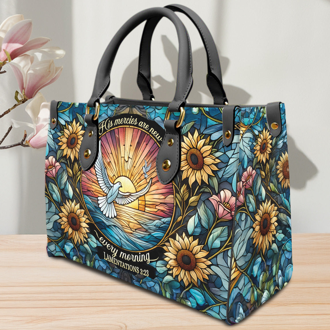 HB11-Christian Leather Handbag, His Mercies Are New PU Leather Purse, Bible Verse Tote Bag, Faith-Based Gift, Floral Sunflower Handbag for Women