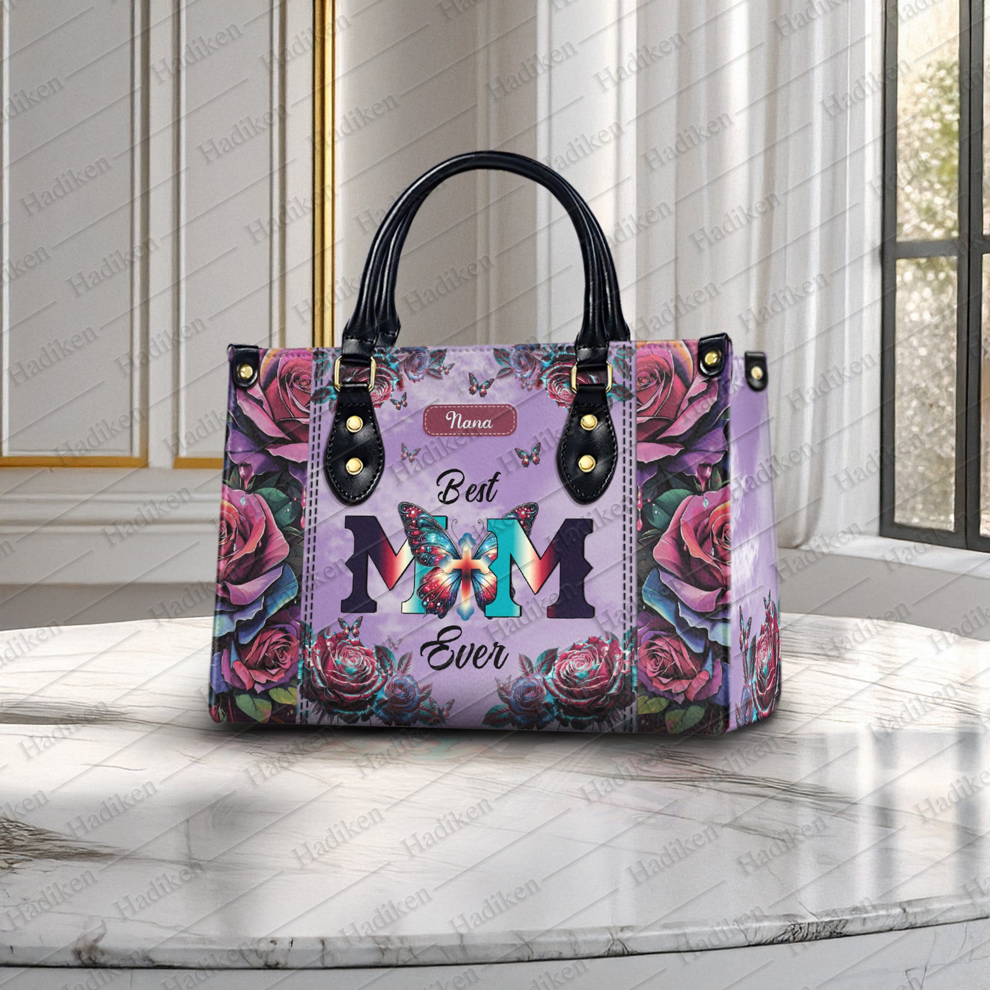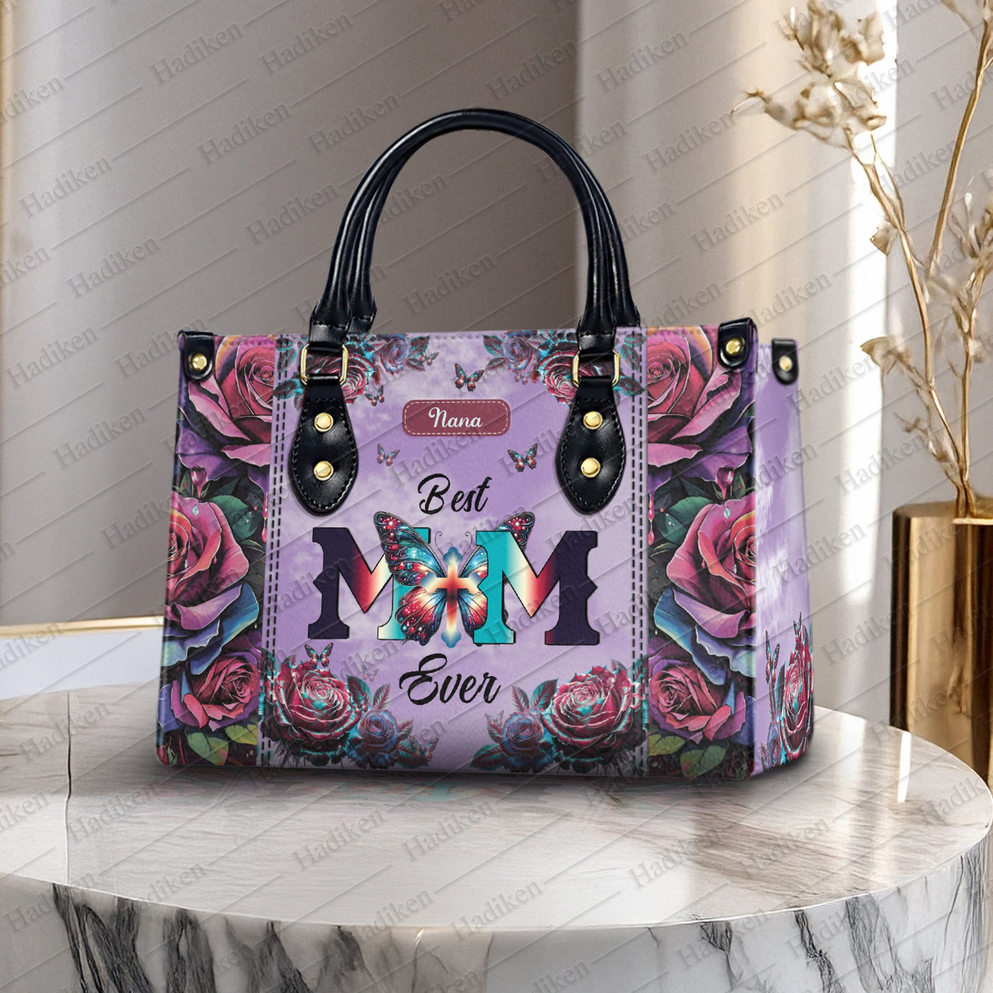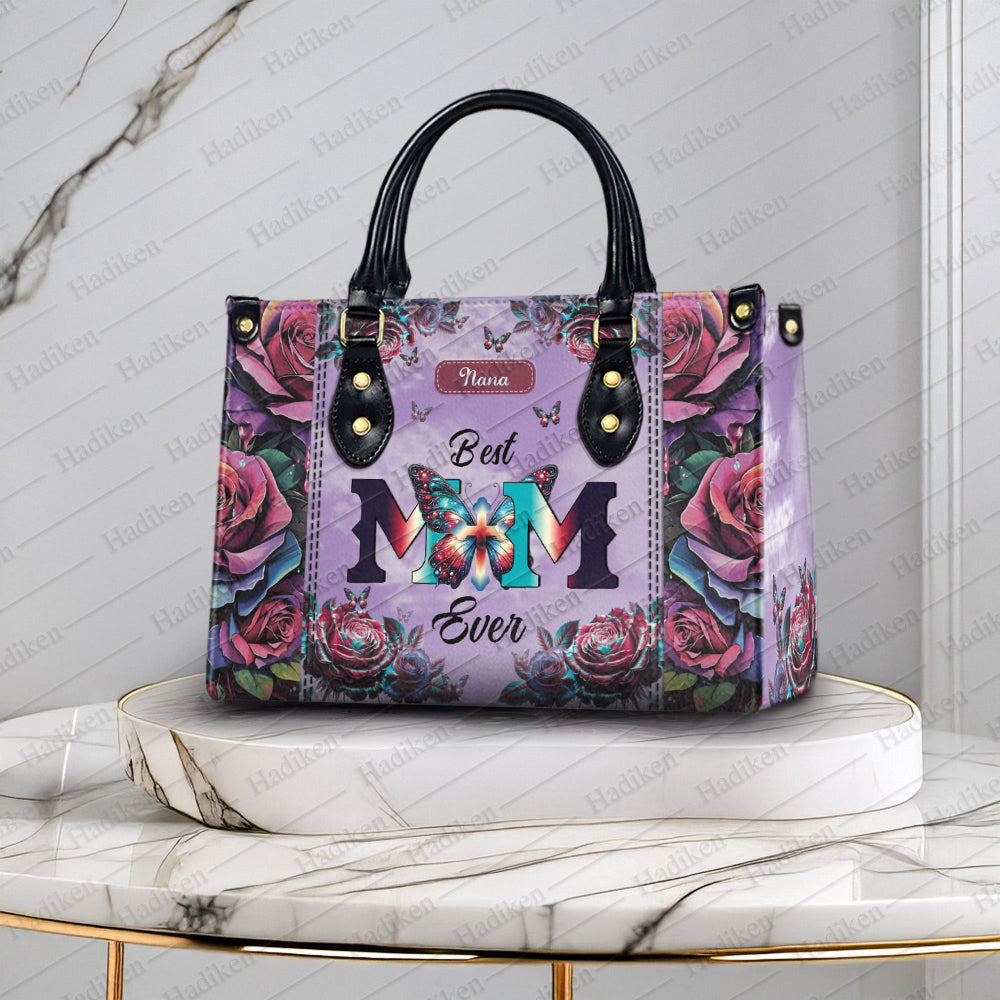 HB12-Personalized "Best Mom Ever" Leather Handbag - Custom Name Gift for Mom, Christian Mother's Day Handbag