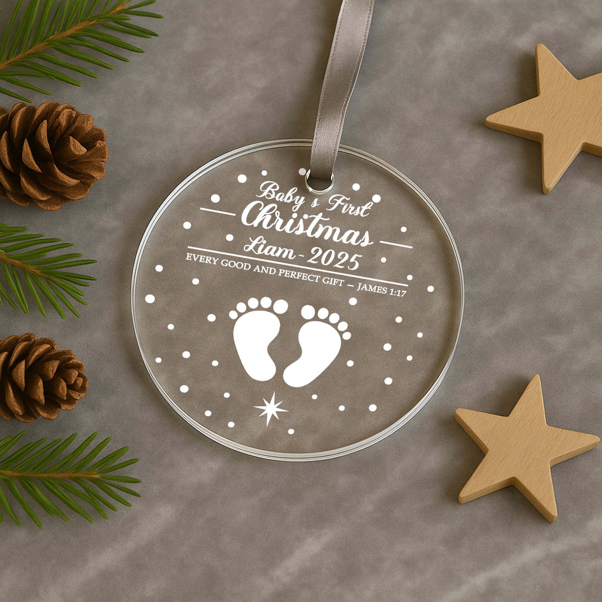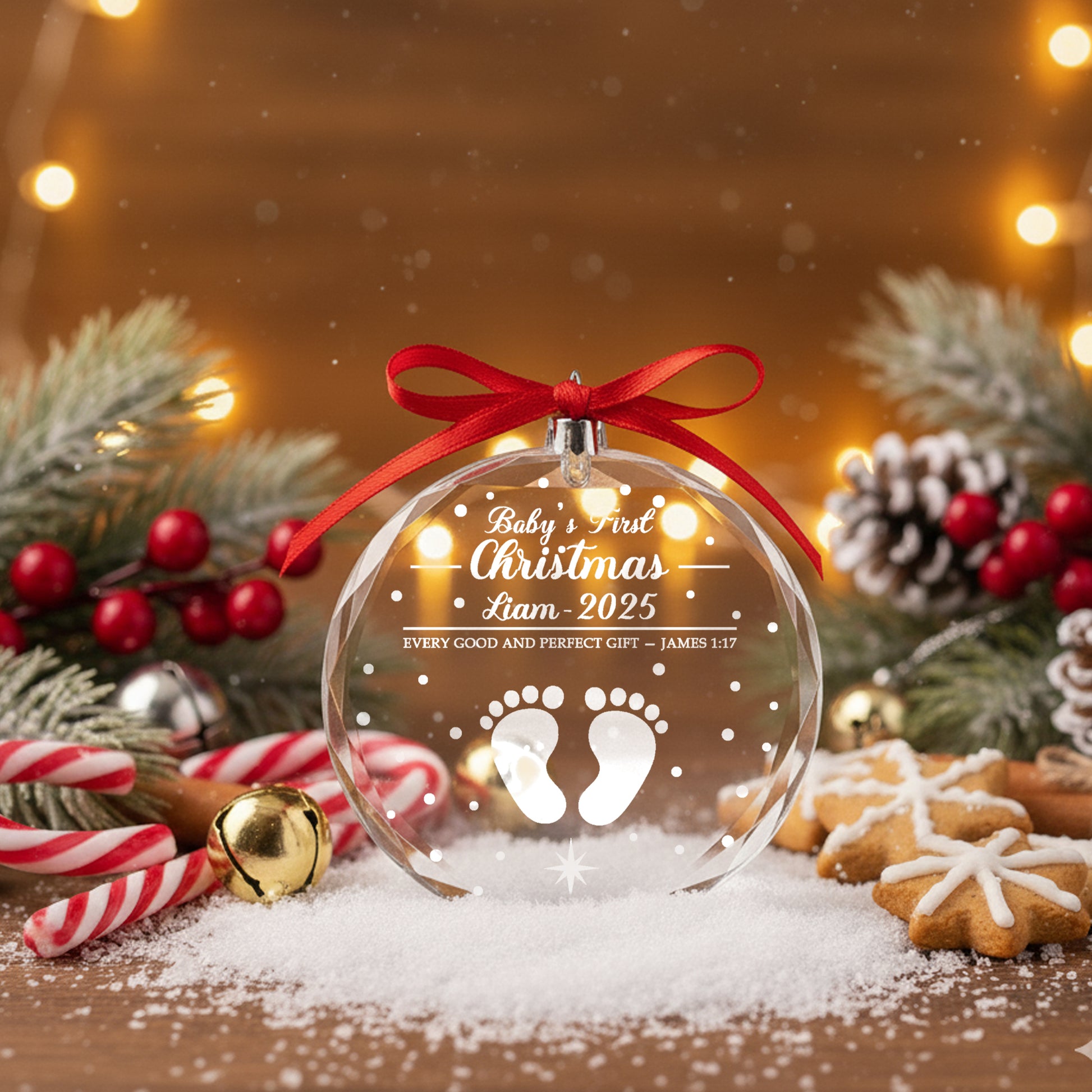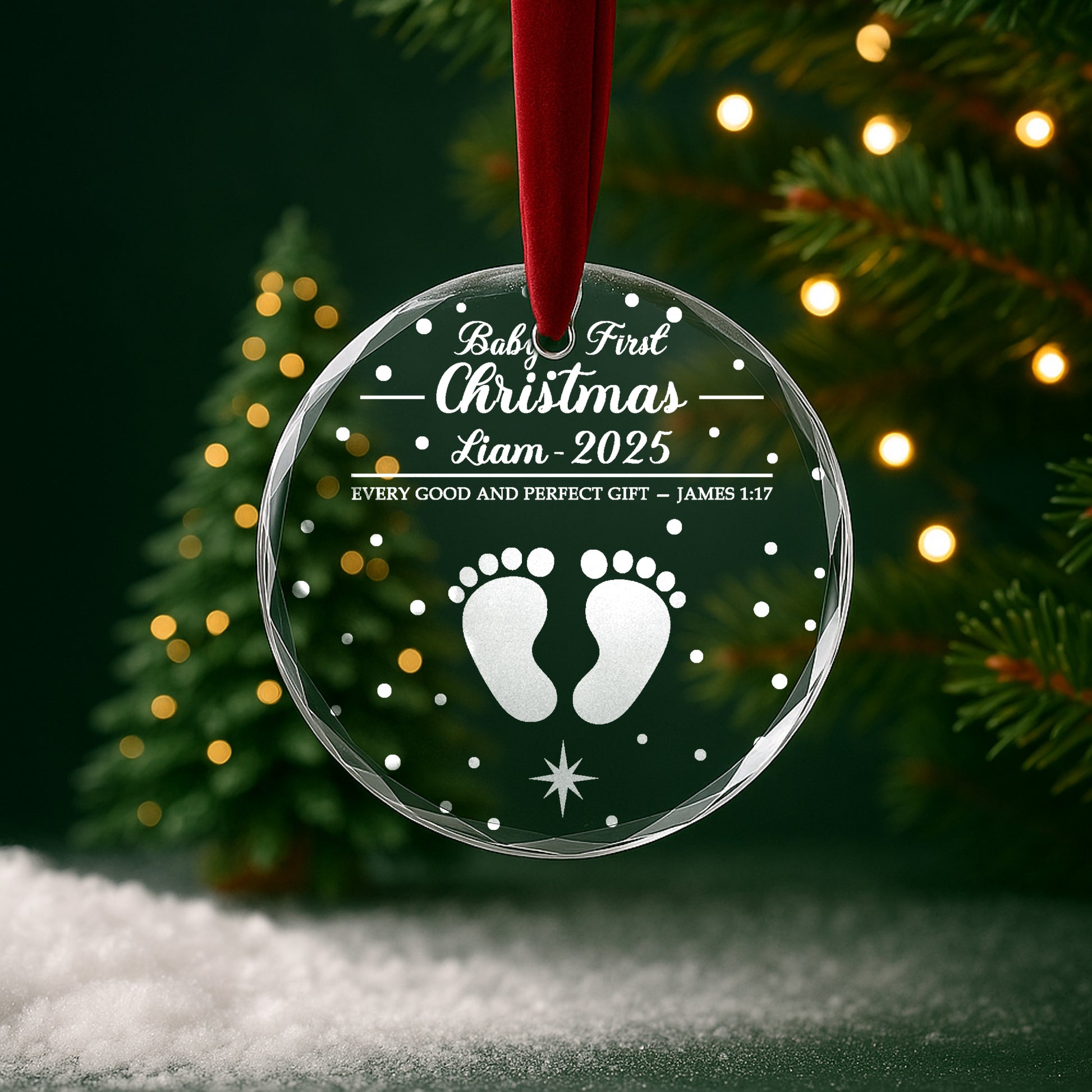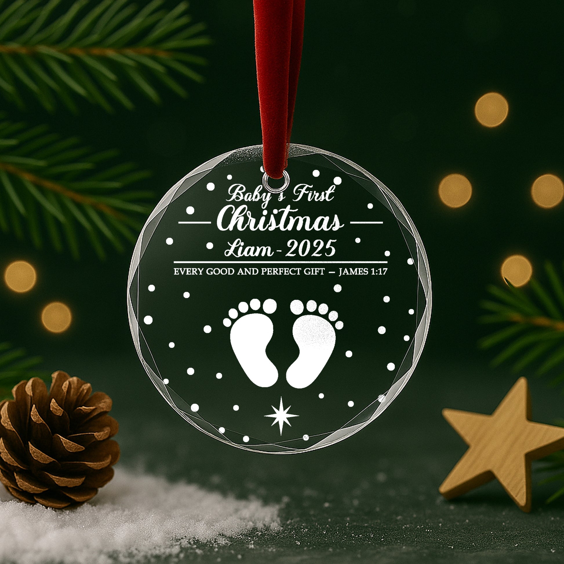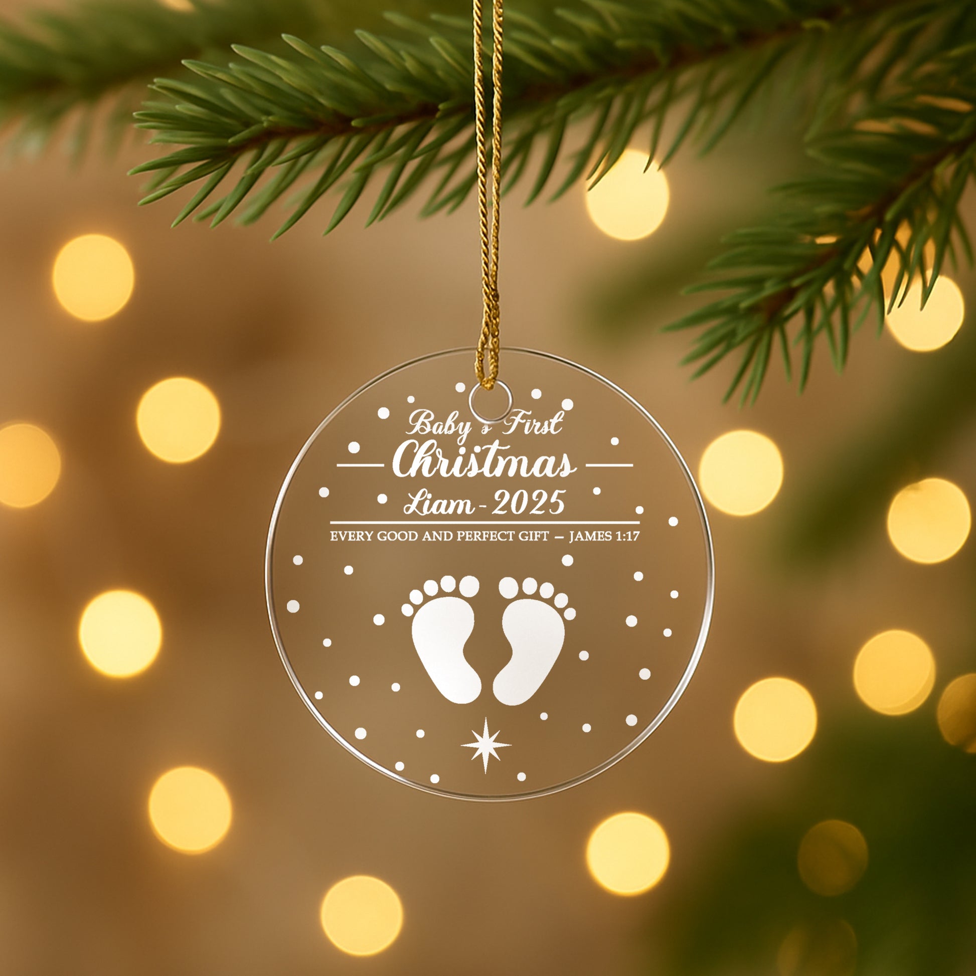 Baby’s First Christmas Ornament 2025 – Custom Name Newborn Keepsake in Glass or Acrylic|ONM21