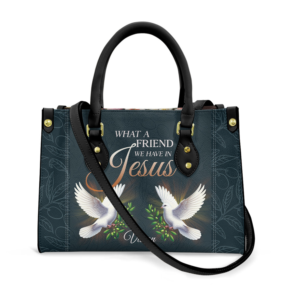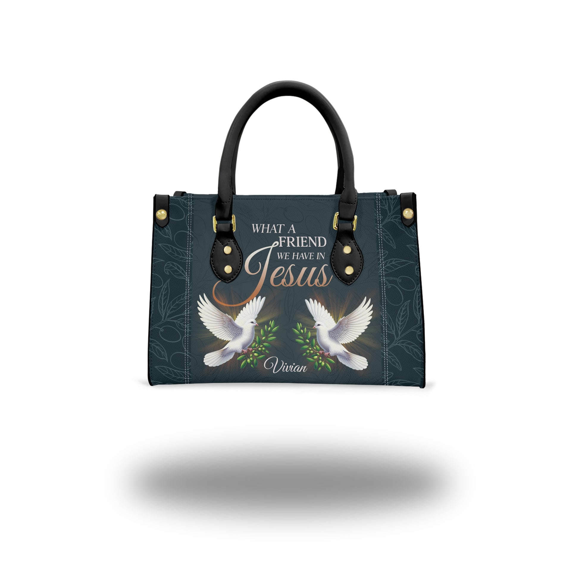 HB96 - Personalized Christian Handbag – What a Friend We Have in Jesus with Doves | Custom Name Faith Purse for Women