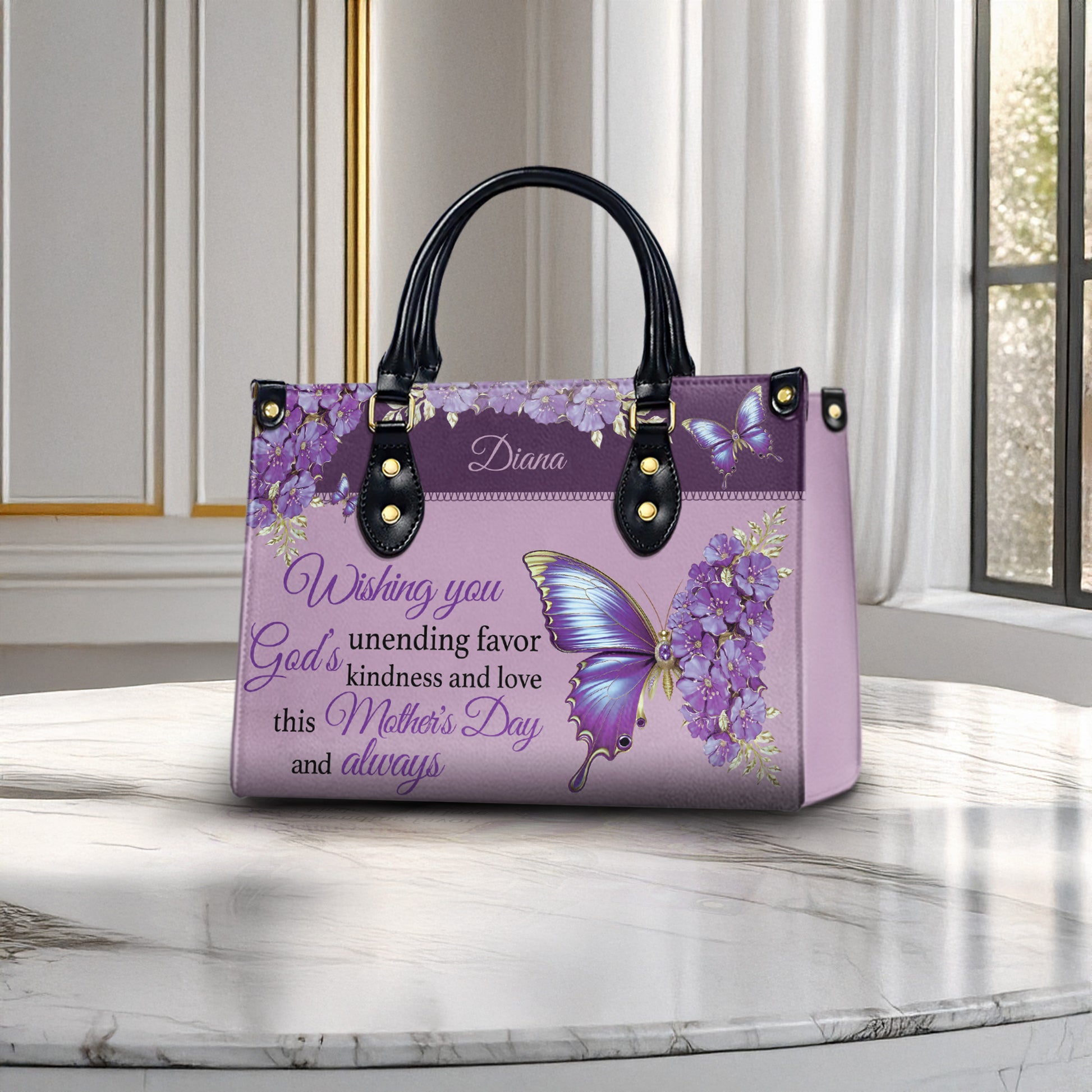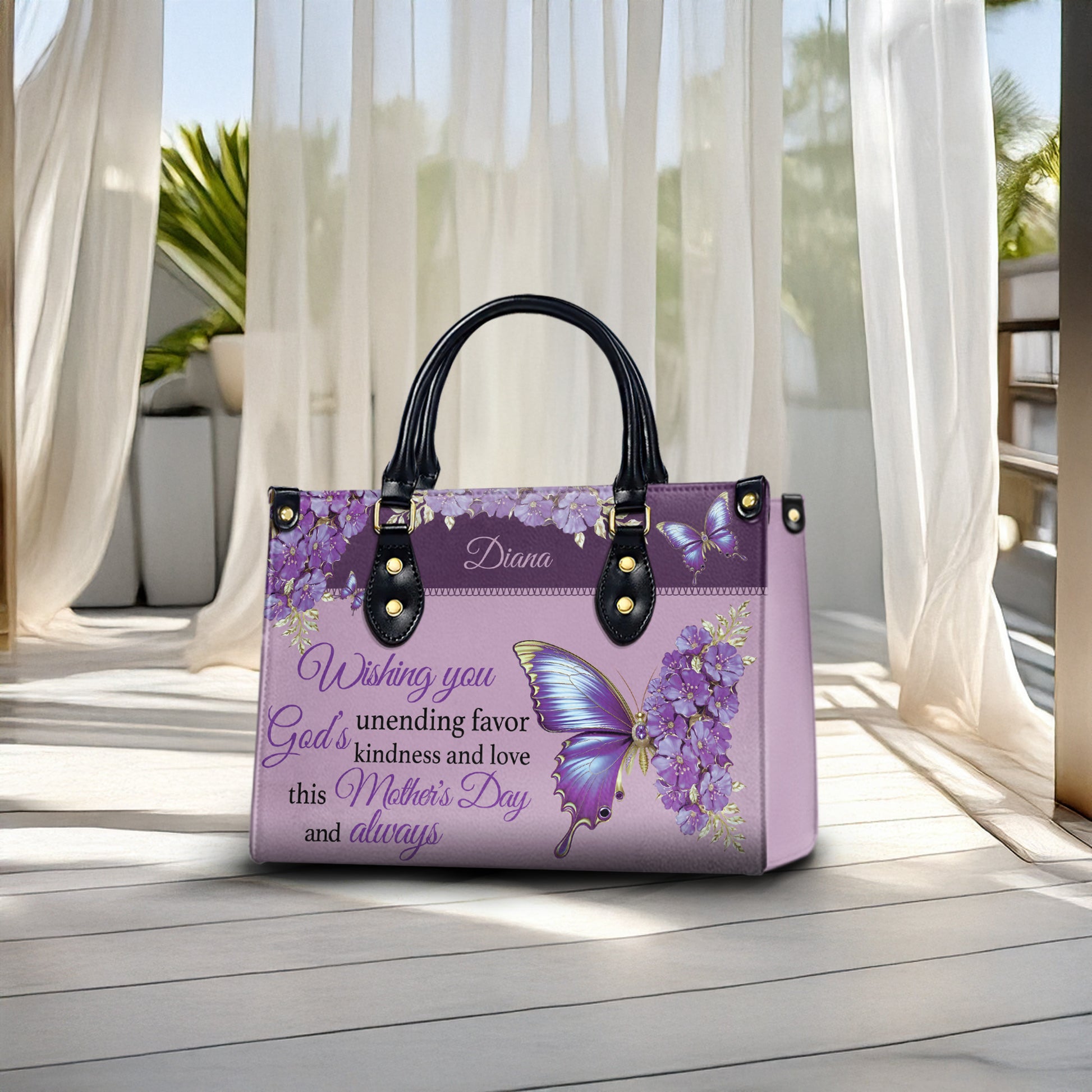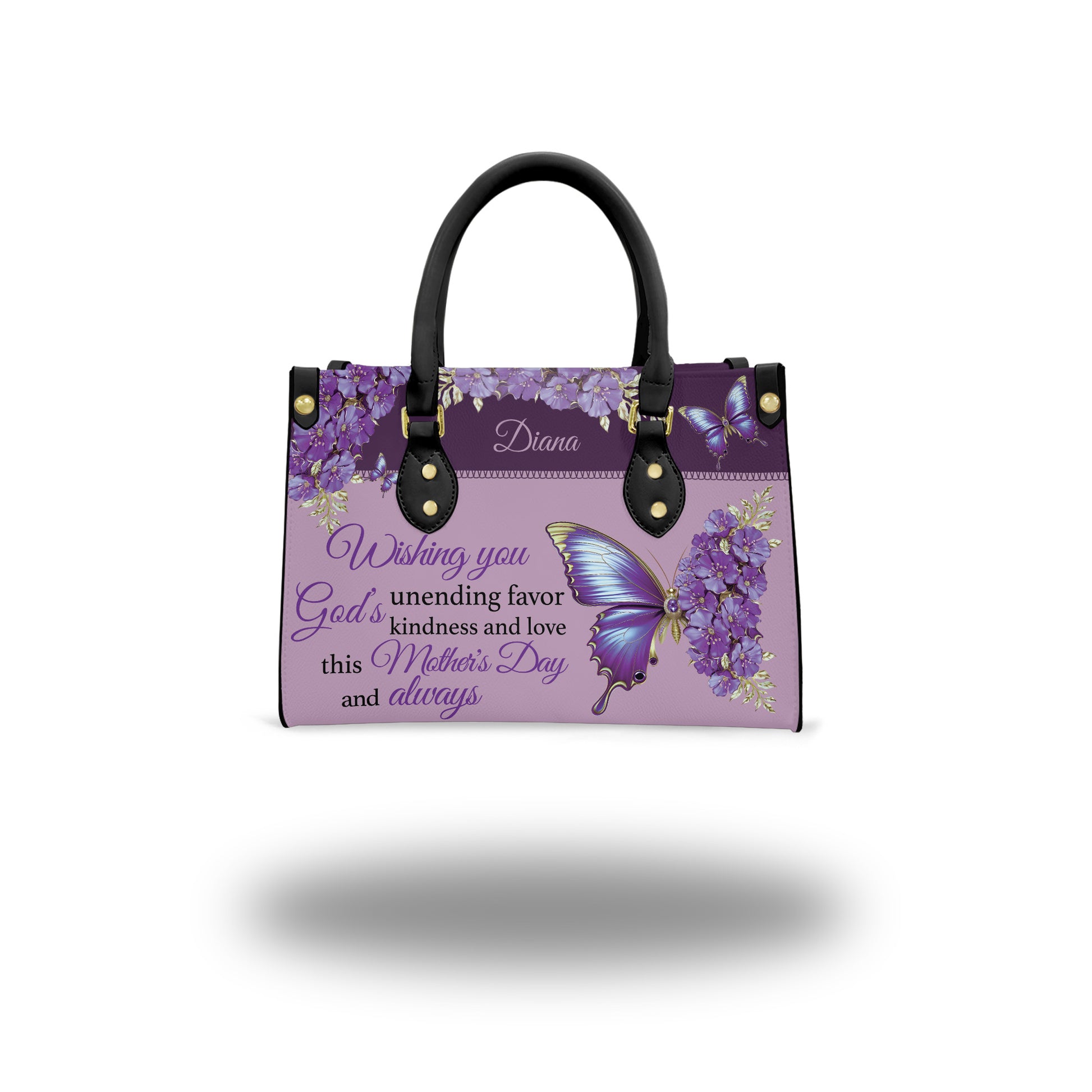 HB97 - Personalized Christian Mother’s Day Handbag – Purple Butterfly Floral Gift for Mom with Custom Name
