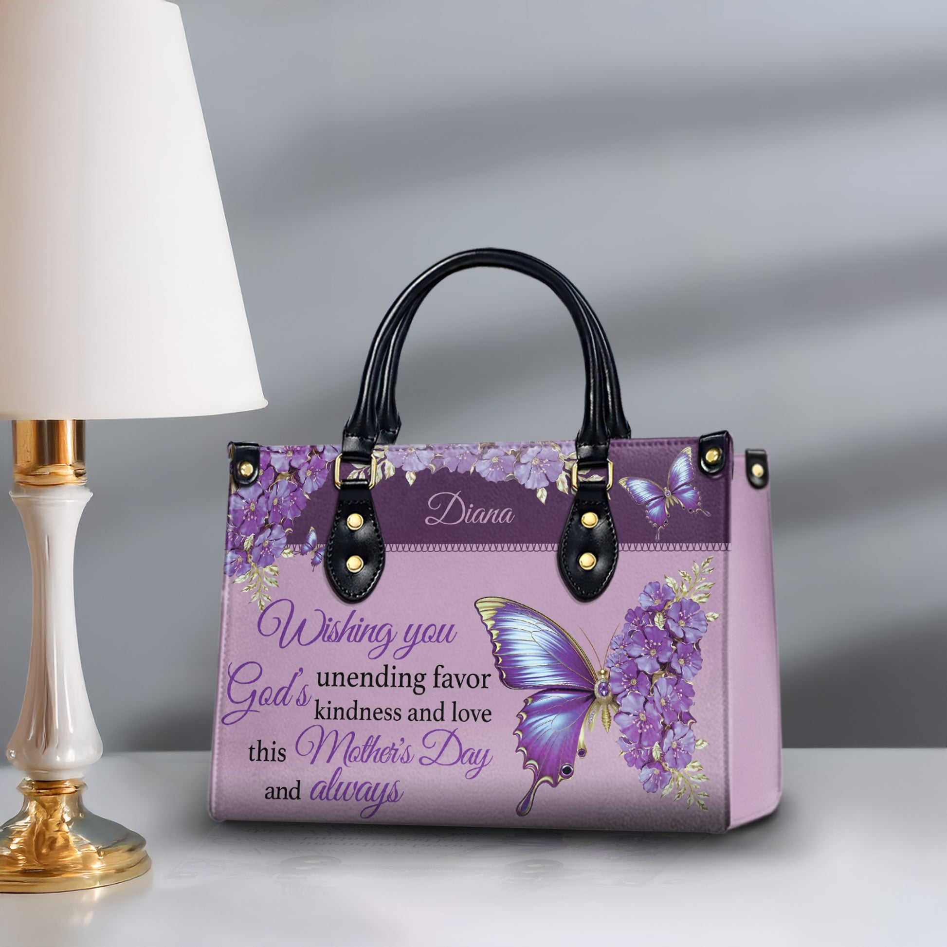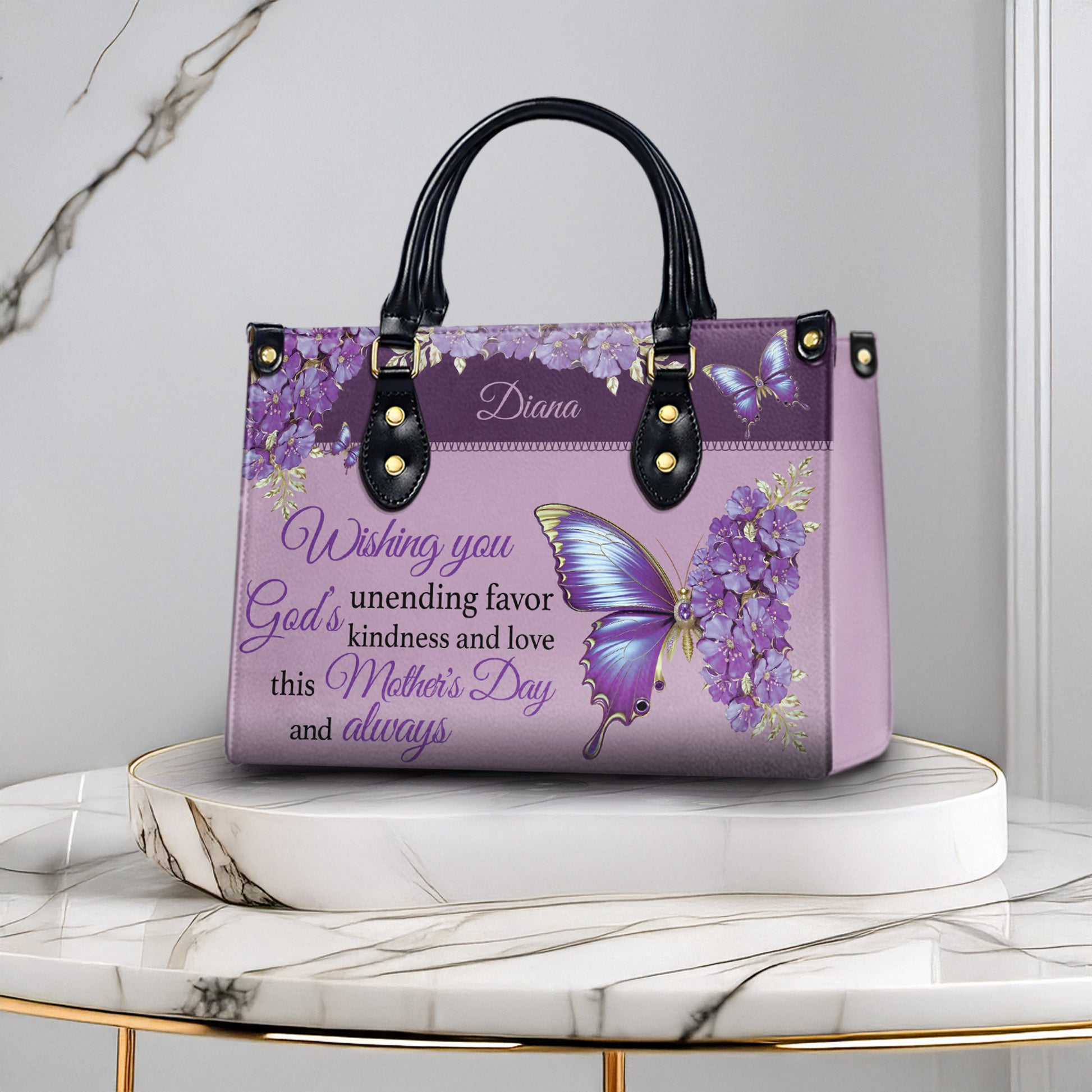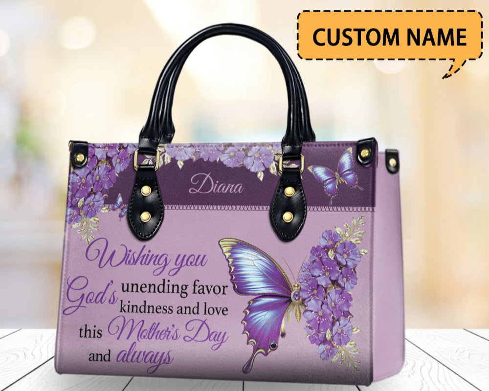 HB97 - Personalized Christian Mother’s Day Handbag – Purple Butterfly Floral Gift for Mom with Custom Name