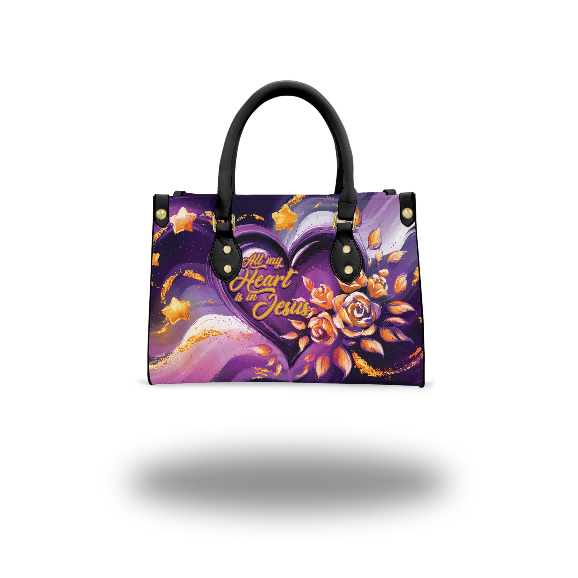💜 Let your handbag speak your heart. This beautifully designed Christian purse features a hand-painted look with glowing floral artwork, a bold heart, and the powerful message “All My Heart Is in Jesus.” Personalize it with your name and carry your faith in style.