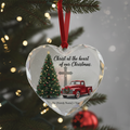 Personalized Christian Christmas Ornament, Christ at the Heart Glass Ornament, Family Name Red Truck Holiday Keepsake|ONM82
