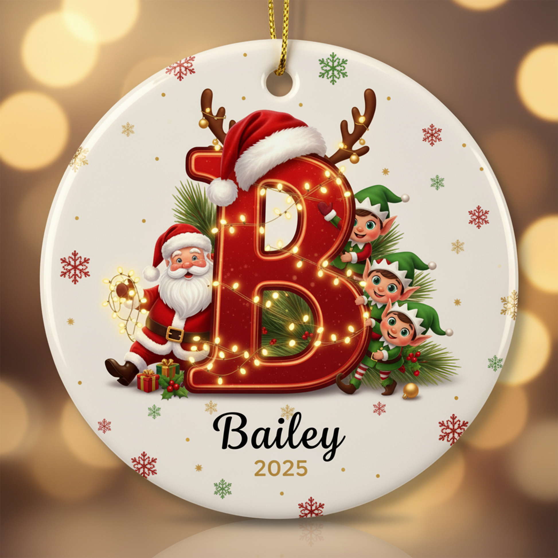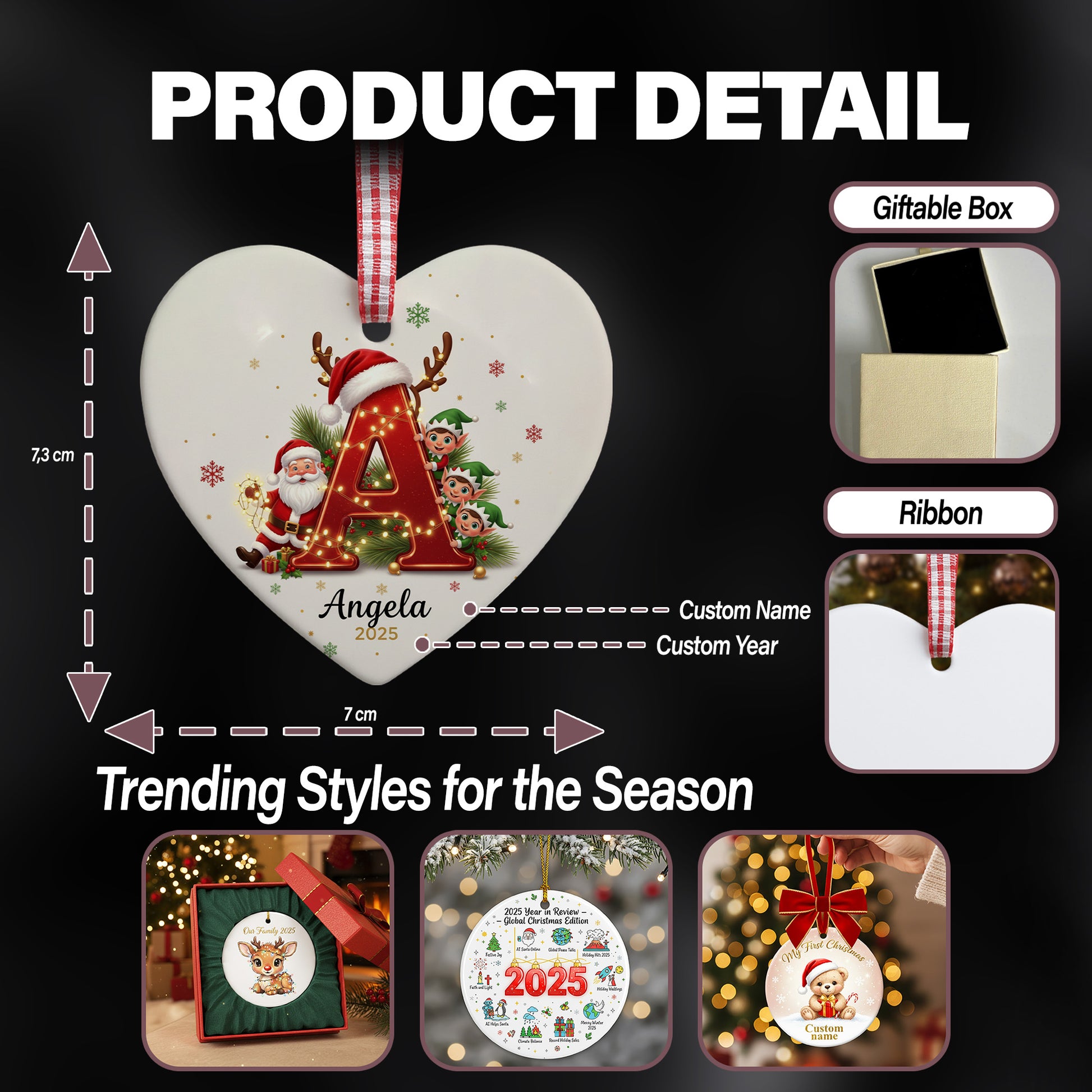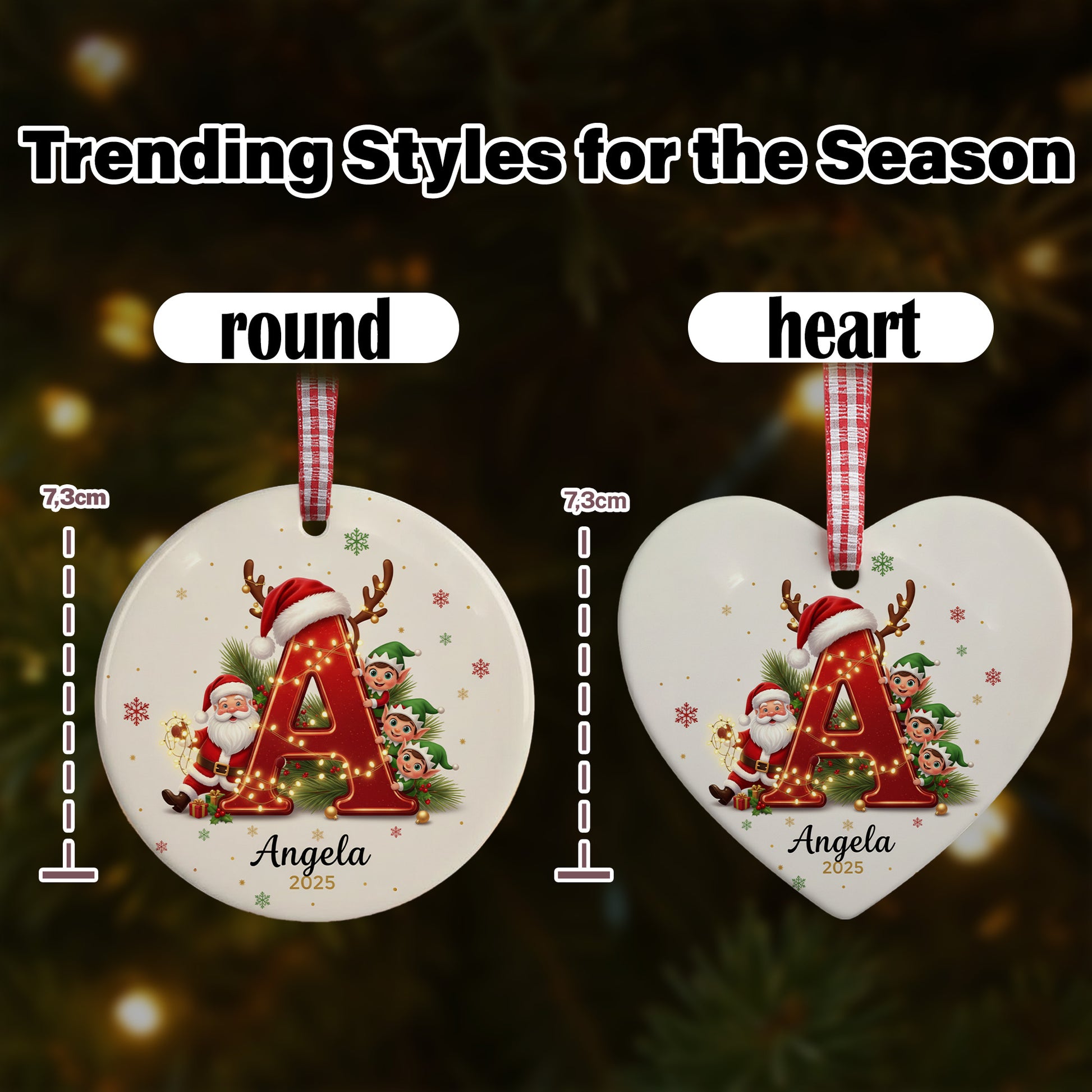 Personalized Christmas Ornament 2025, Santa & Elf Letter A-Z Ornament, Custom Name Ceramic Ornament, Family Gift, Holiday Decoration | Ornament138