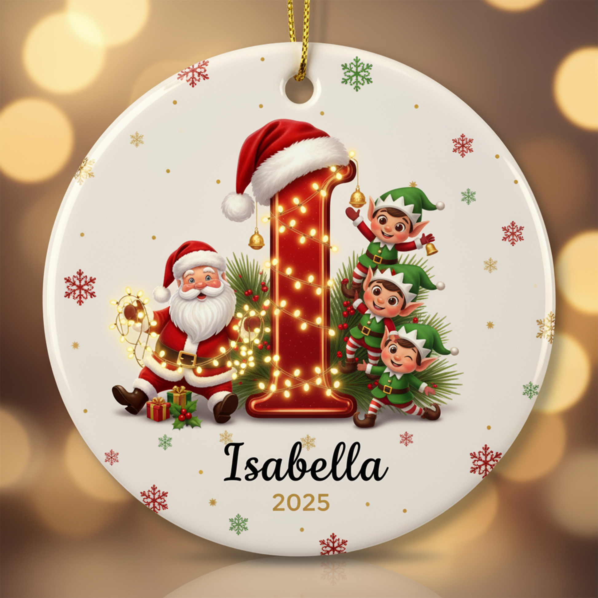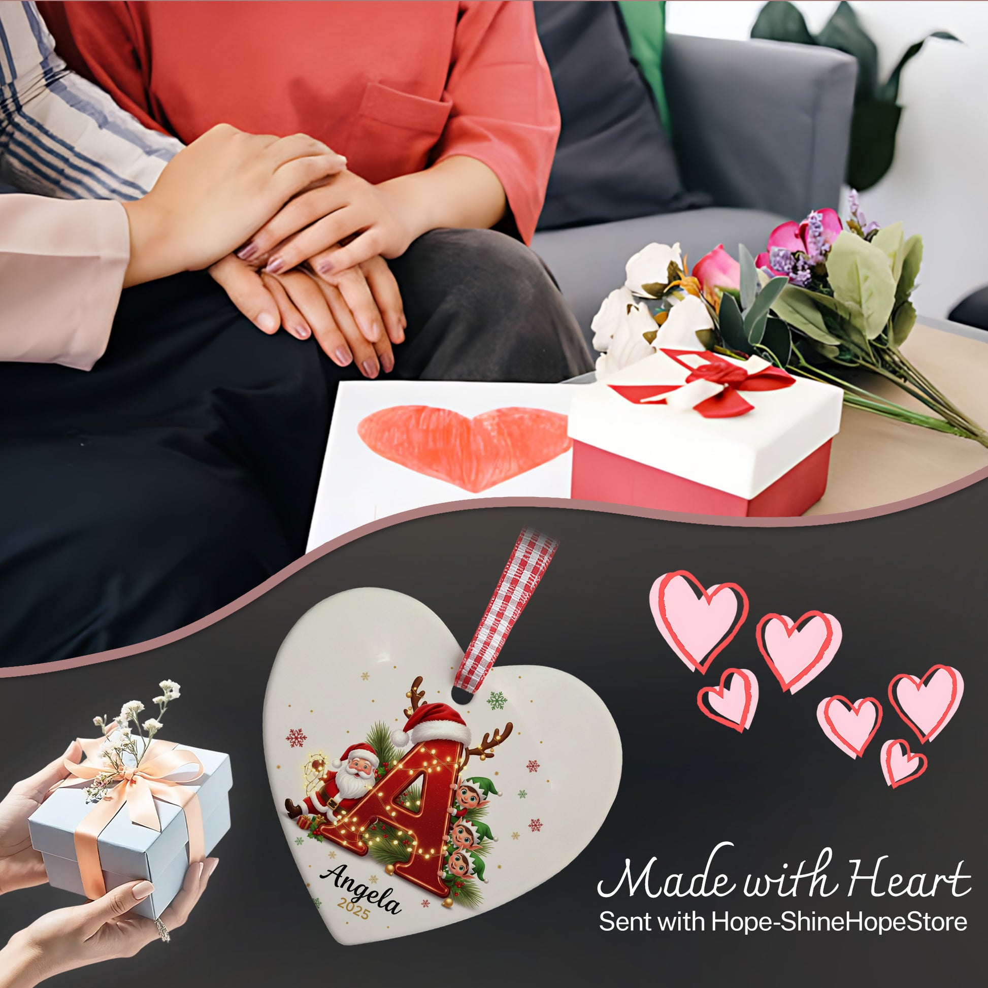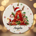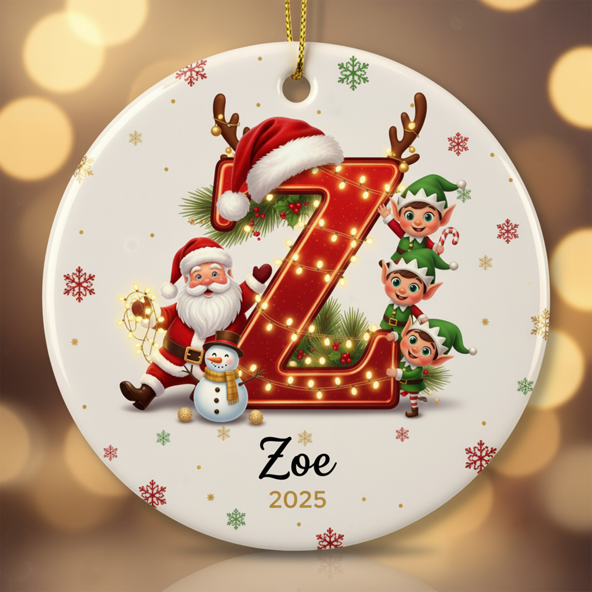 Personalized Christmas Ornament 2025, Santa & Elf Letter A-Z Ornament, Custom Name Ceramic Ornament, Family Gift, Holiday Decoration | Ornament138