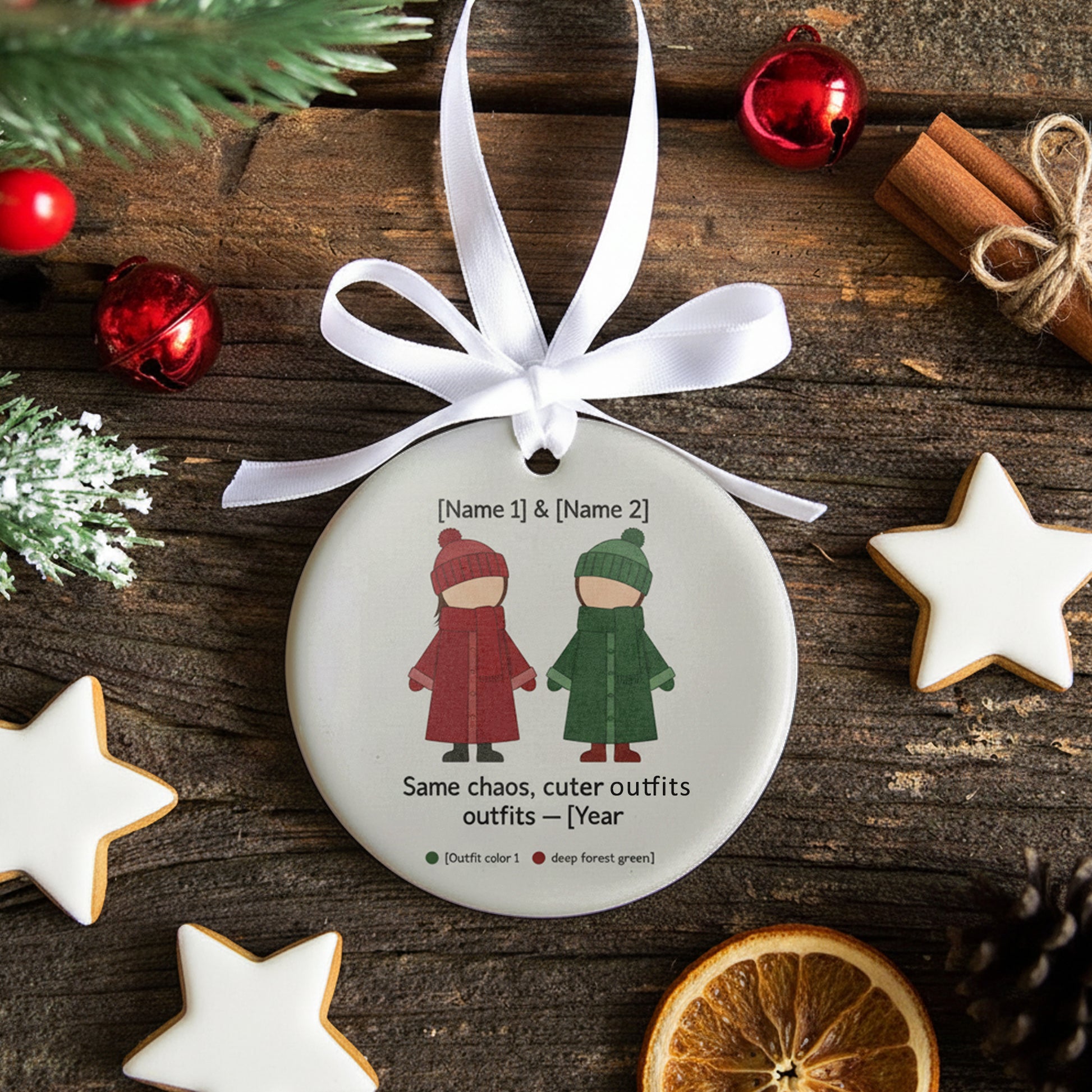Custom Name and Year Ornament – Same Chaos Cuter Outfits, Funny Friendship Christmas Gift, Ceramic Ornament 2025|ONM24