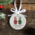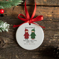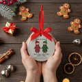 This custom ceramic ornament features two adorable characters in festive outfits, complete with your chosen names and year. A fun and heartwarming reminder of shared memories, laughter, and friendship — perfect for decorating your Christmas tree or gifting to someone special.