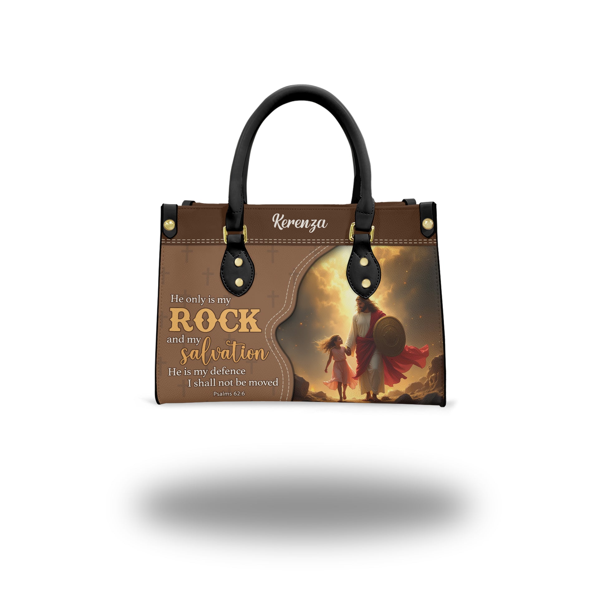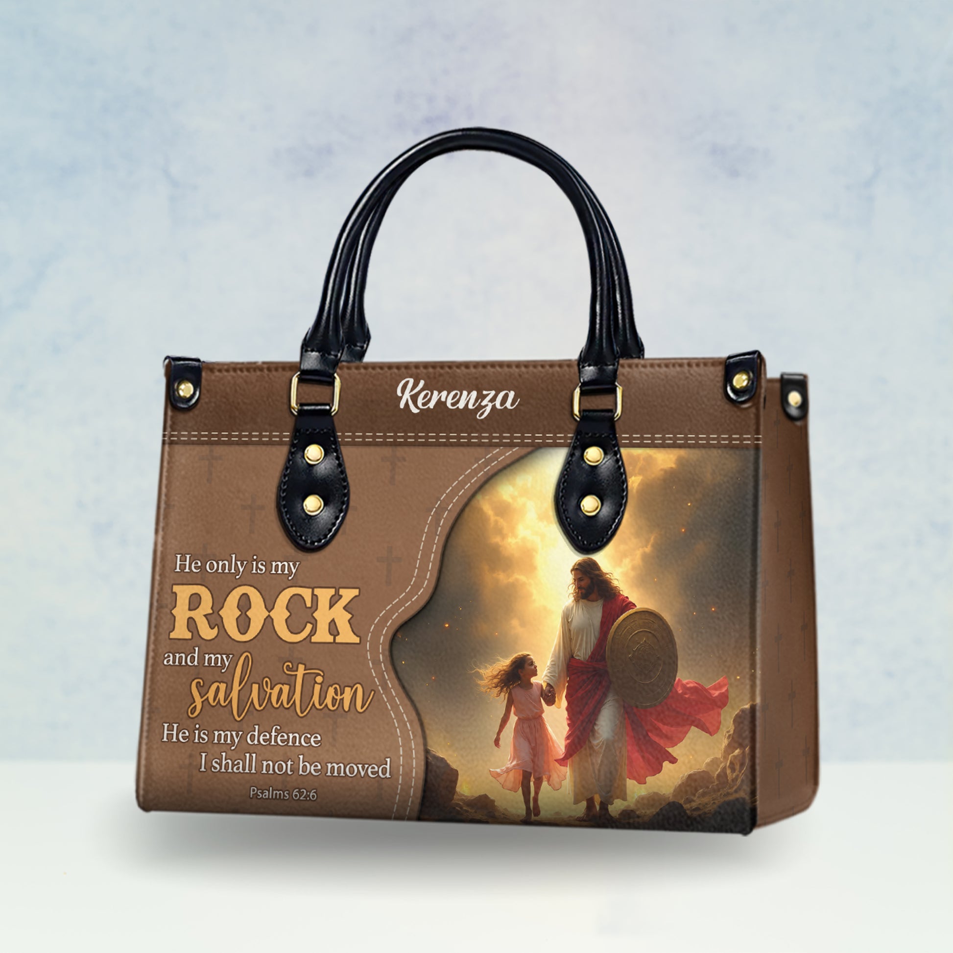 HB73-Christian Handbag with Jesus and Little Girl – Psalm 62:6 Scripture Bag – Faith-Based Purse with Custom Name – Religious Gift for Women