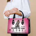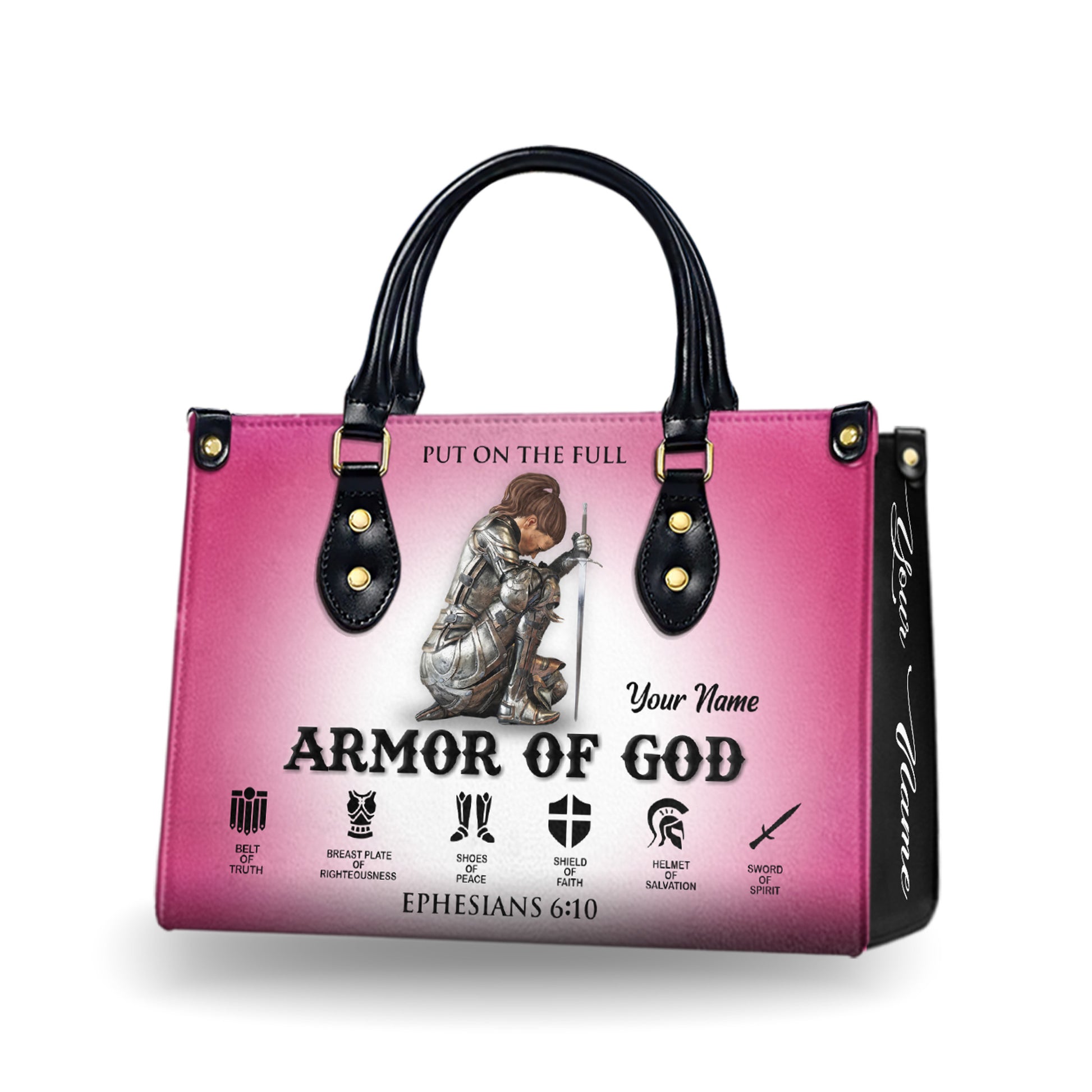 HB56-personalized armor of god handbag for women, christian custom name purse with ephesians 6 10 verse, pink leather faith bag