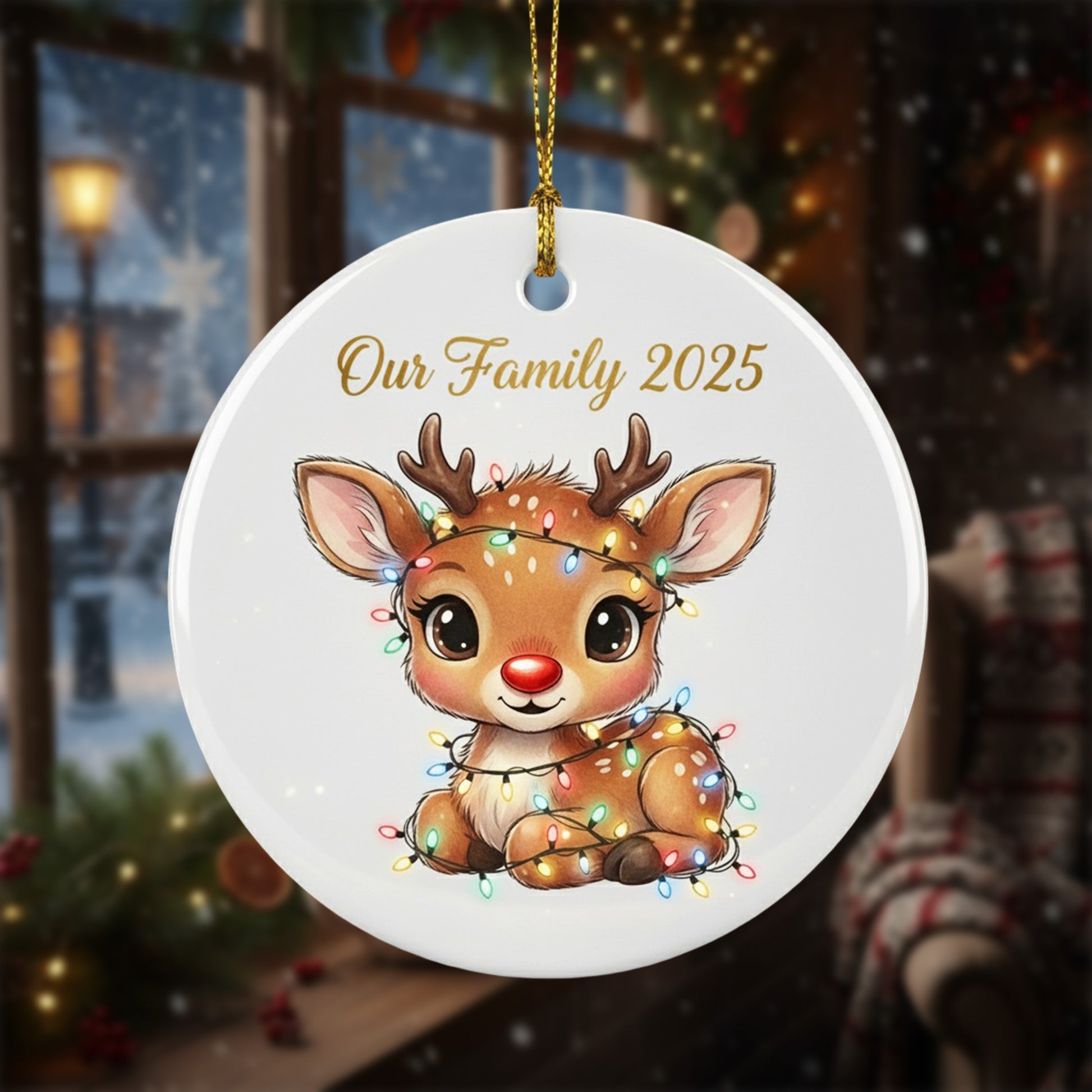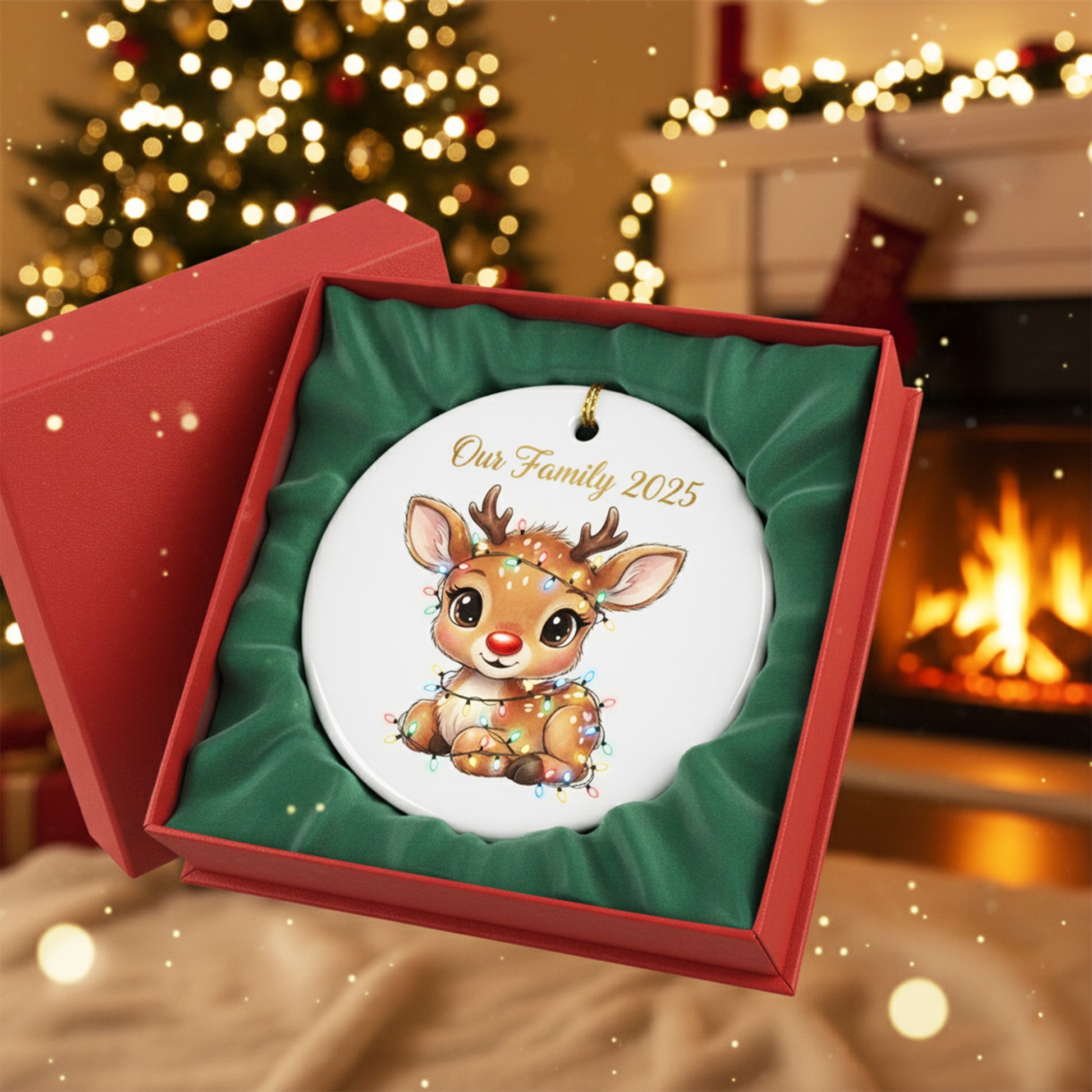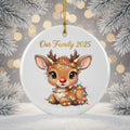 Personalized Reindeer Family Ornament 2025, Custom Ceramic Circle Christmas Ornament, Family Holiday Giff | Ornament134