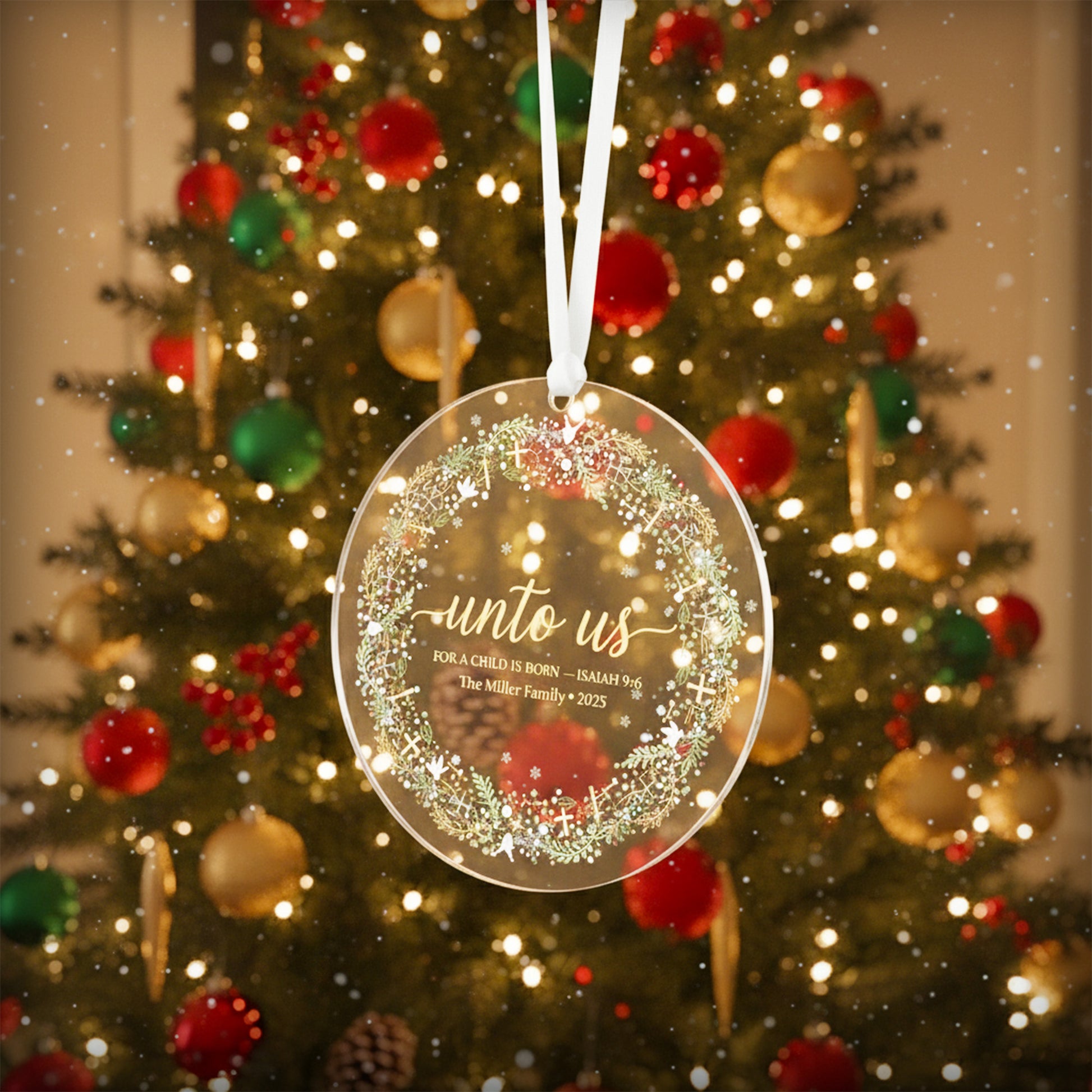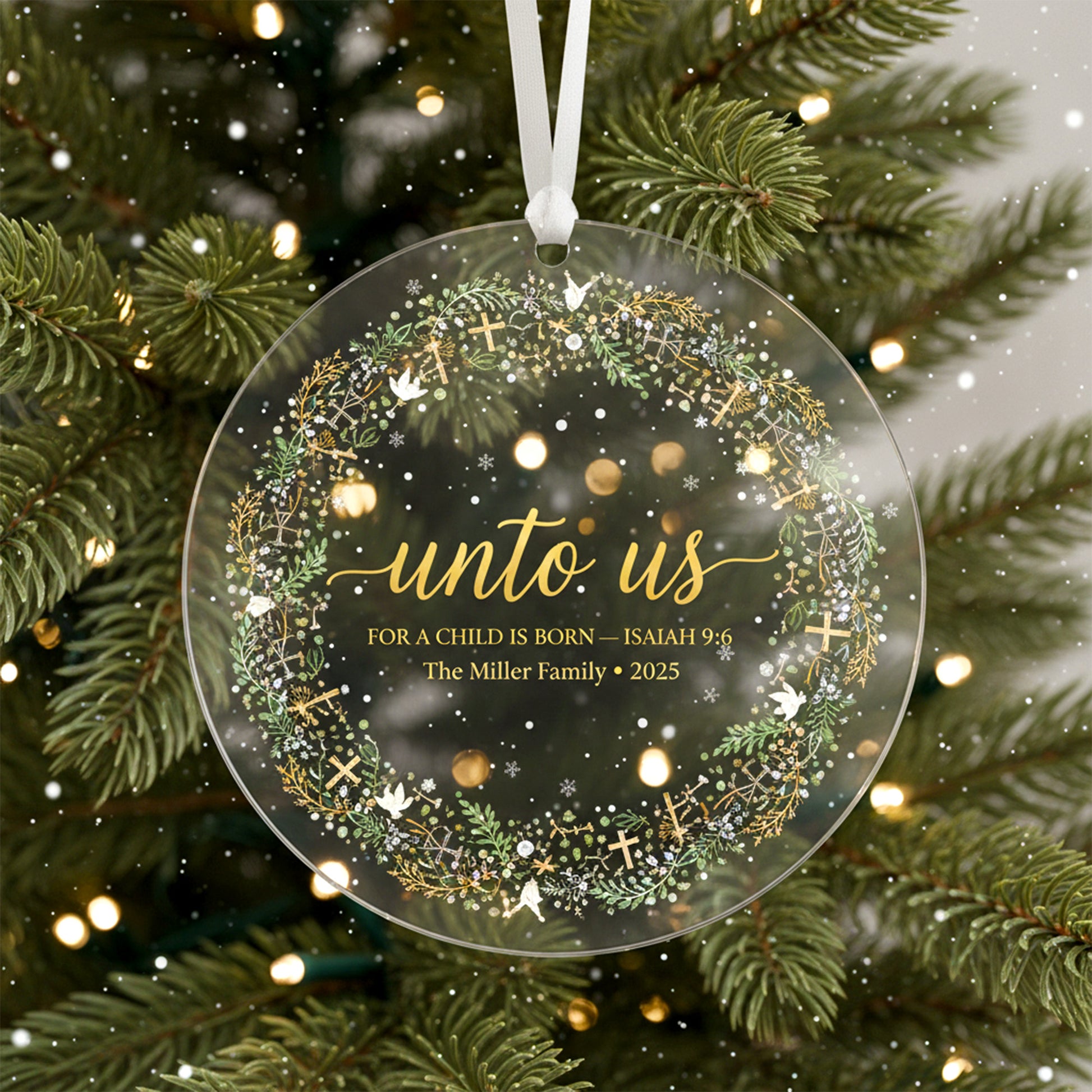 Unto Us Ornament 2025, Christian Christmas Ornament, Bible Verse Isaiah 9:6, Personalized Family Ornament, Religious Holiday Gift|ONM130