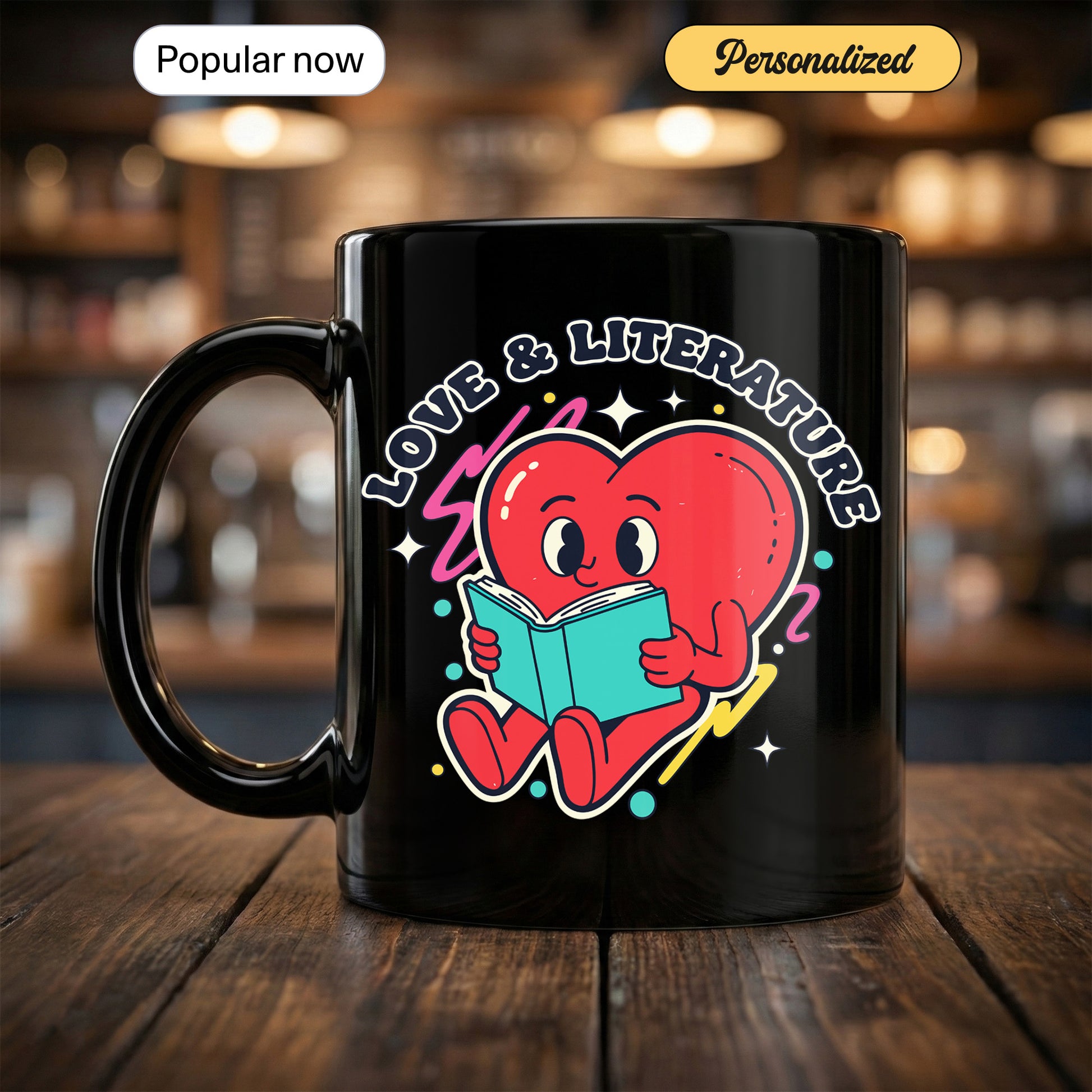 The Love & Literature Mug is perfect for anyone who loves books and is passionate about reading. Featuring a colorful heart character reading a book, this mug combines the best of love and literature in a charming, playful design. Whether you're sipping your favorite coffee, tea, or hot chocolate, this mug is sure to add a fun and cozy touch to your reading sessions.