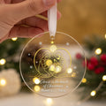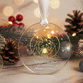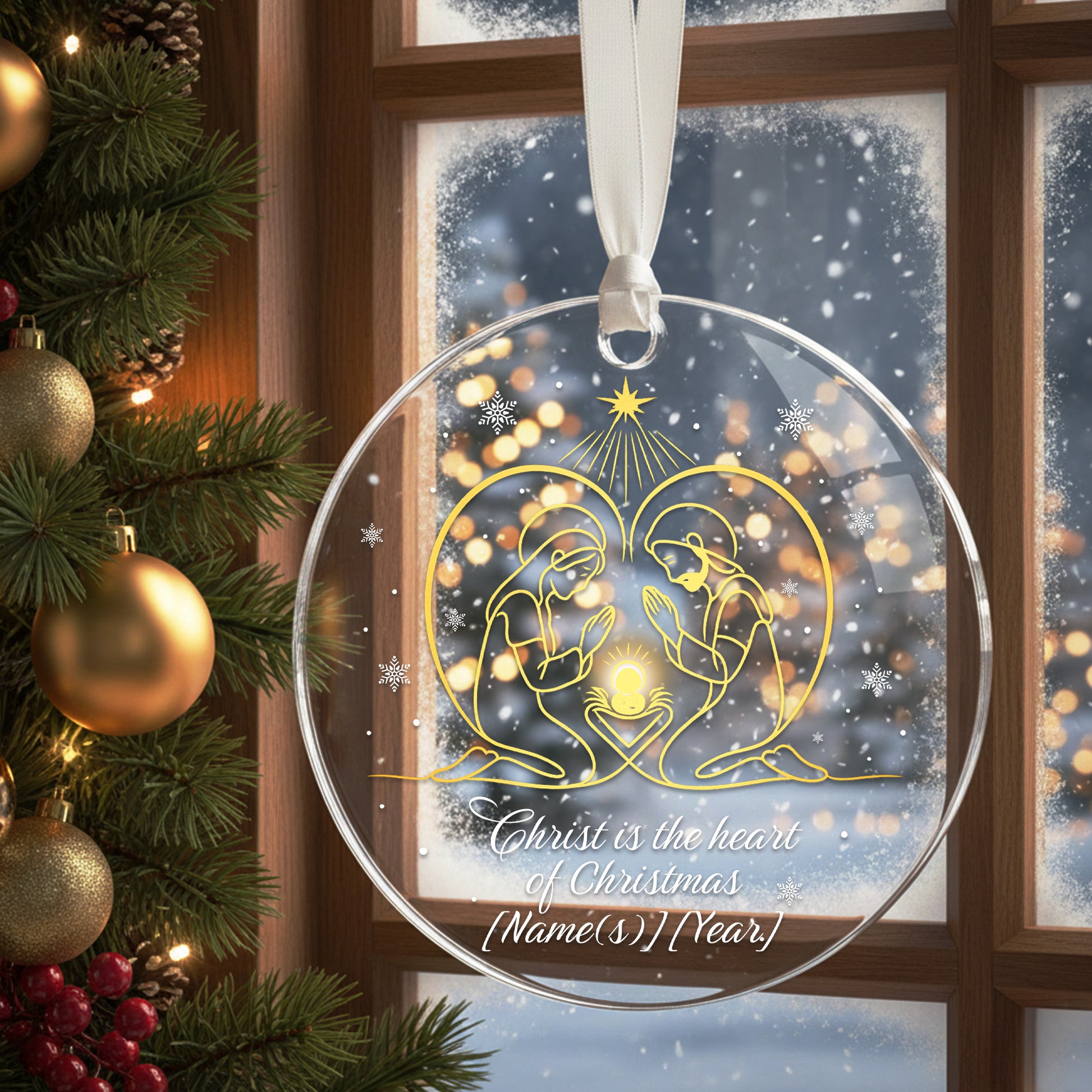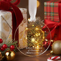 Expertly crafted from premium acrylic (3.5x3.5 inches) or elegant glass (3.15x3.15x0.235 inches), each ornament glows beautifully under your Christmas lights — adding warmth and spiritual meaning to your festive décor.