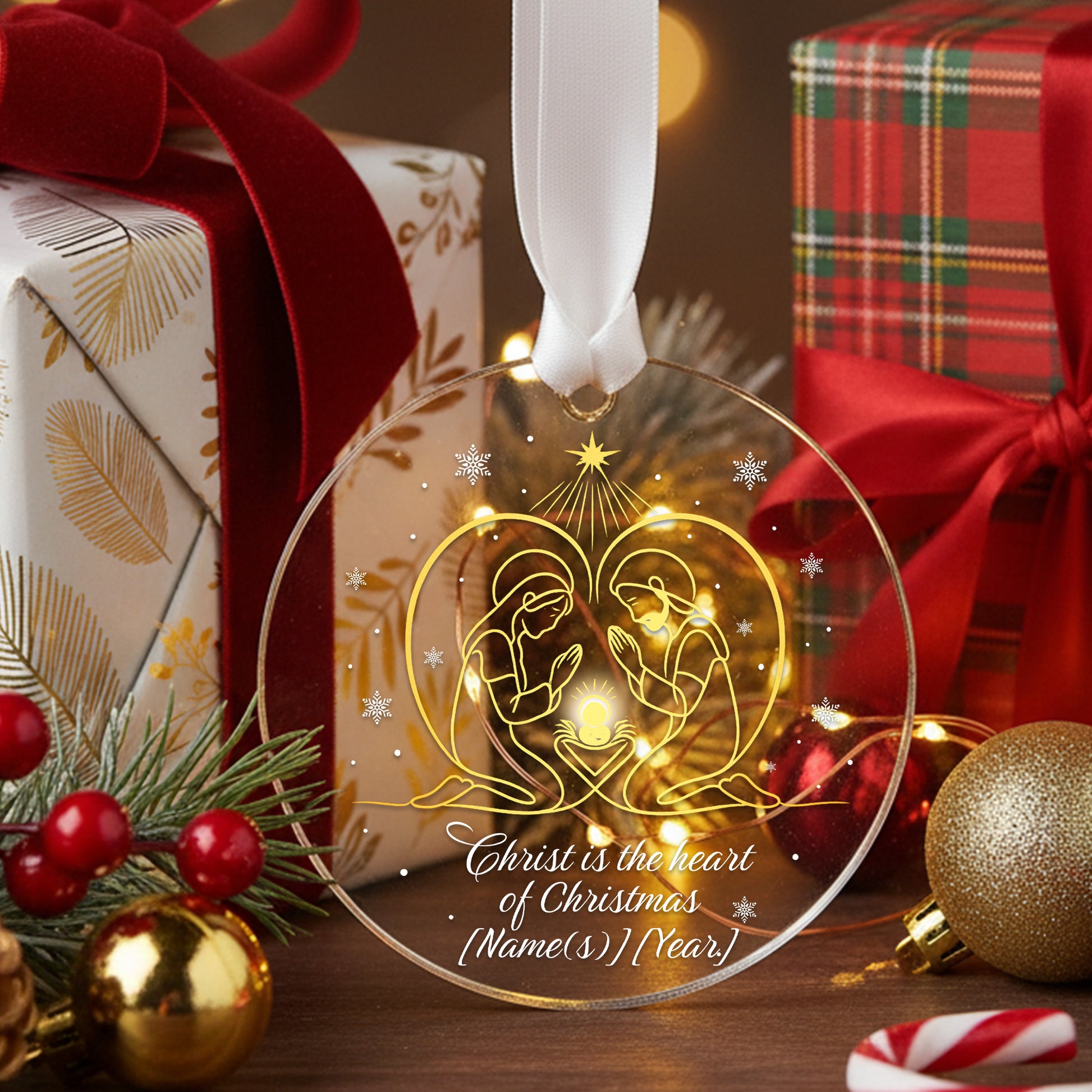 Religious Christmas Ornament - Christ Is The Heart Of Christmas Custom Acrylic Decoration|ONM37