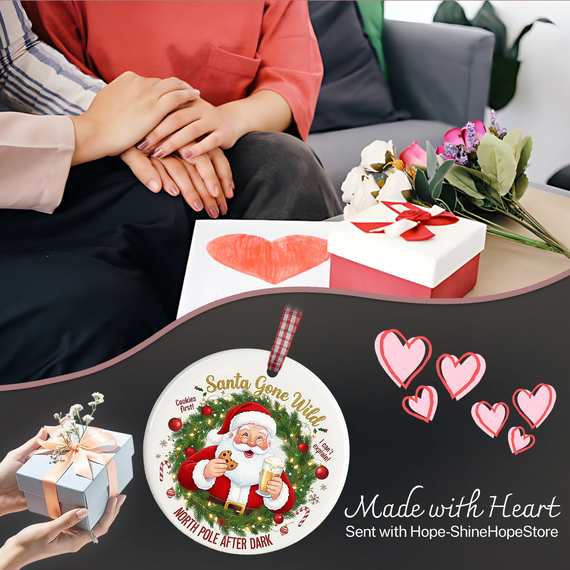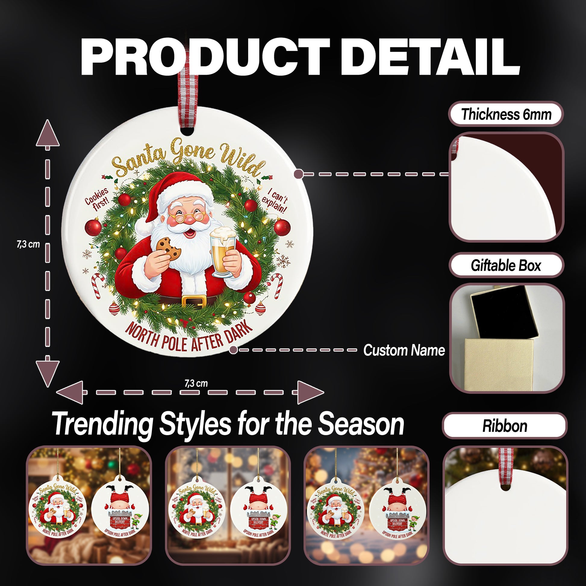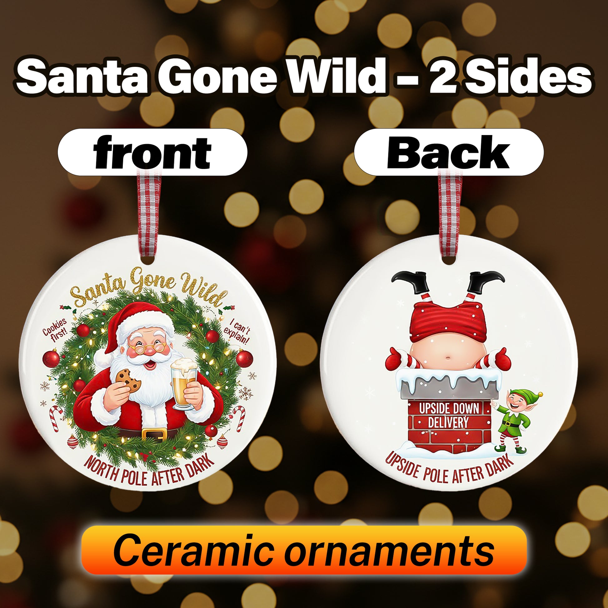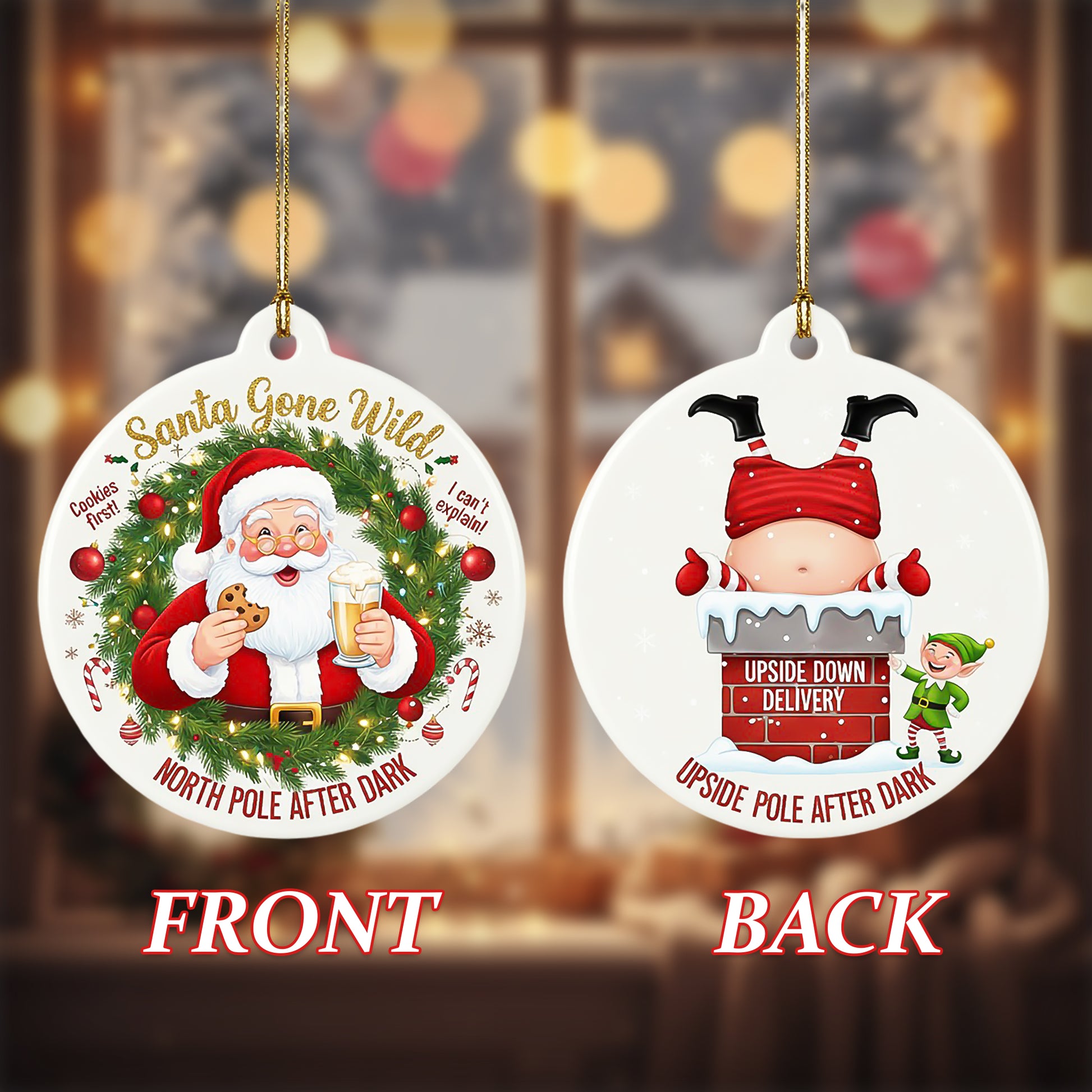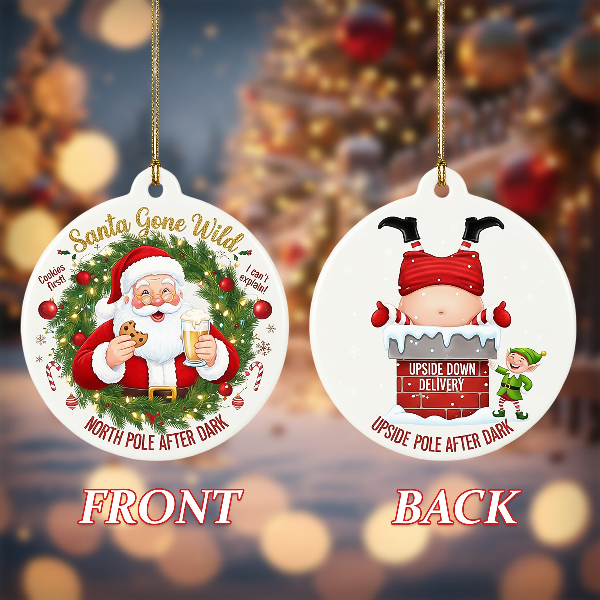 Santa Gone Wild Ornament, Funny Christmas Ornament for Adults, Naughty Santa Ceramic Ornament | Ornament142