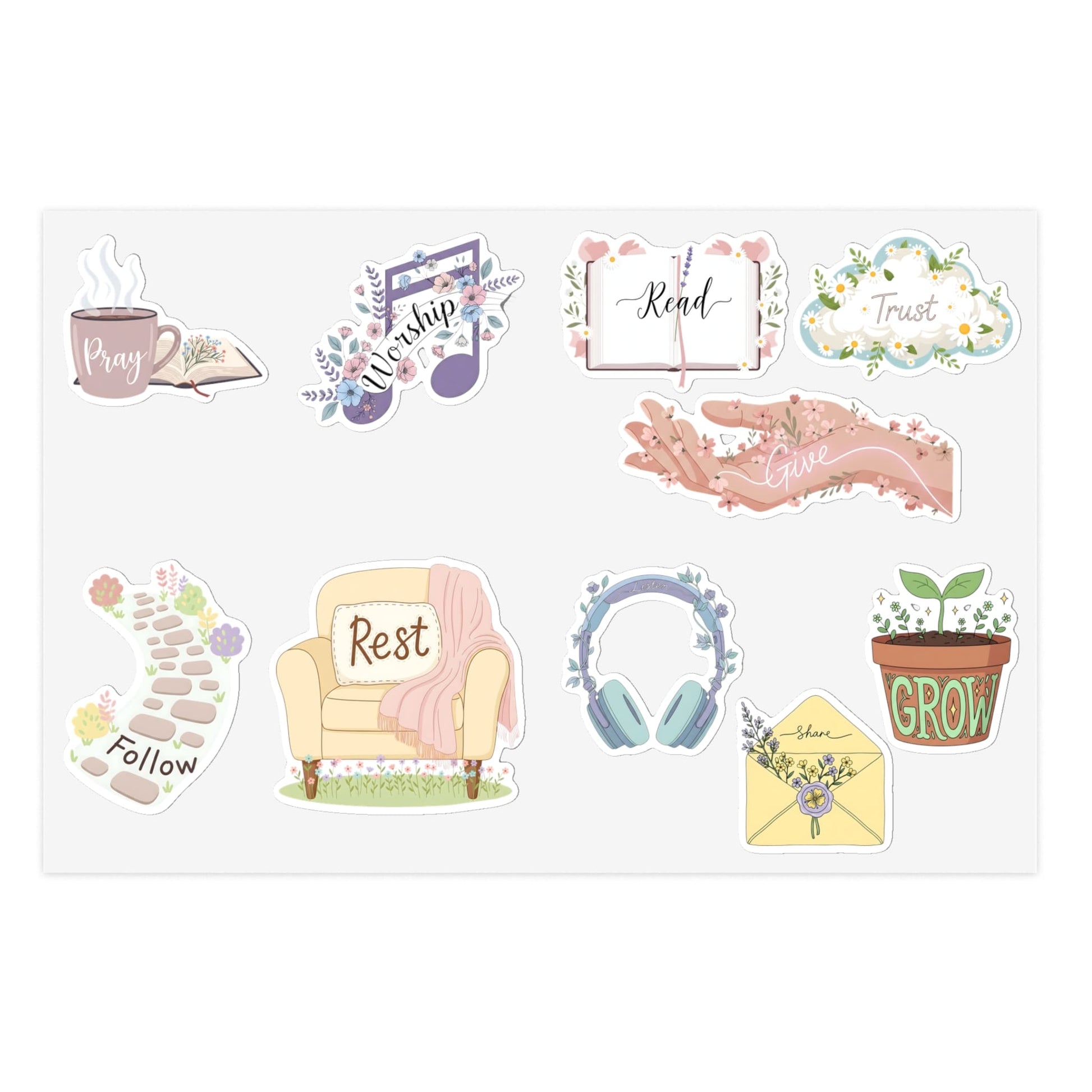 STK37 Christian Habit Sticker Set – Faith Based Vinyl Decals for Laptop Water Bottle Journal – Pray Worship Grow Trust Stickers – Inspirational Christian Gift