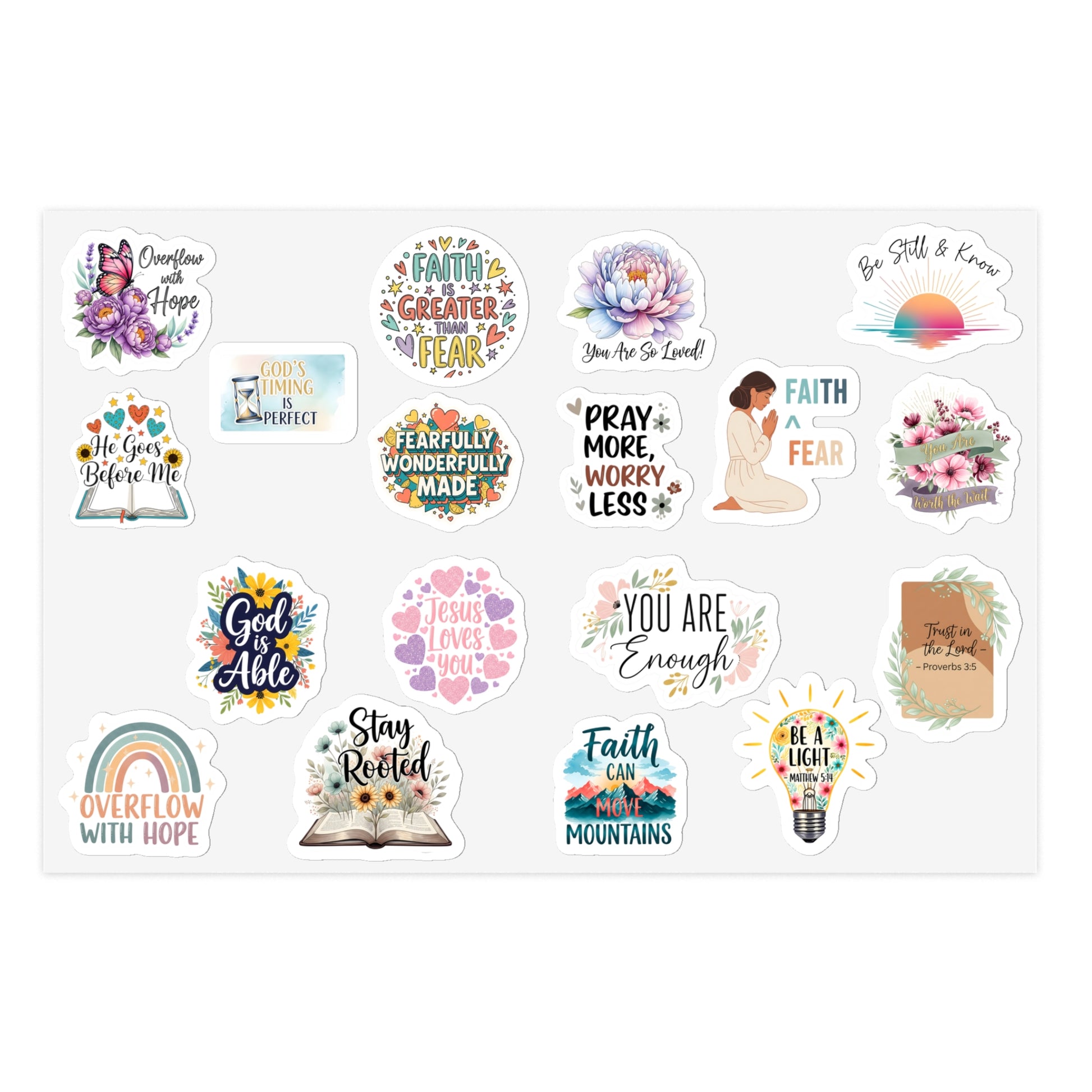 STK40 Faith Over Fear Christian Sticker Pack – Inspirational Waterproof Vinyl Decals for Laptop, Water Bottle, Journal – Bible Verse Quotes Gift for Believers