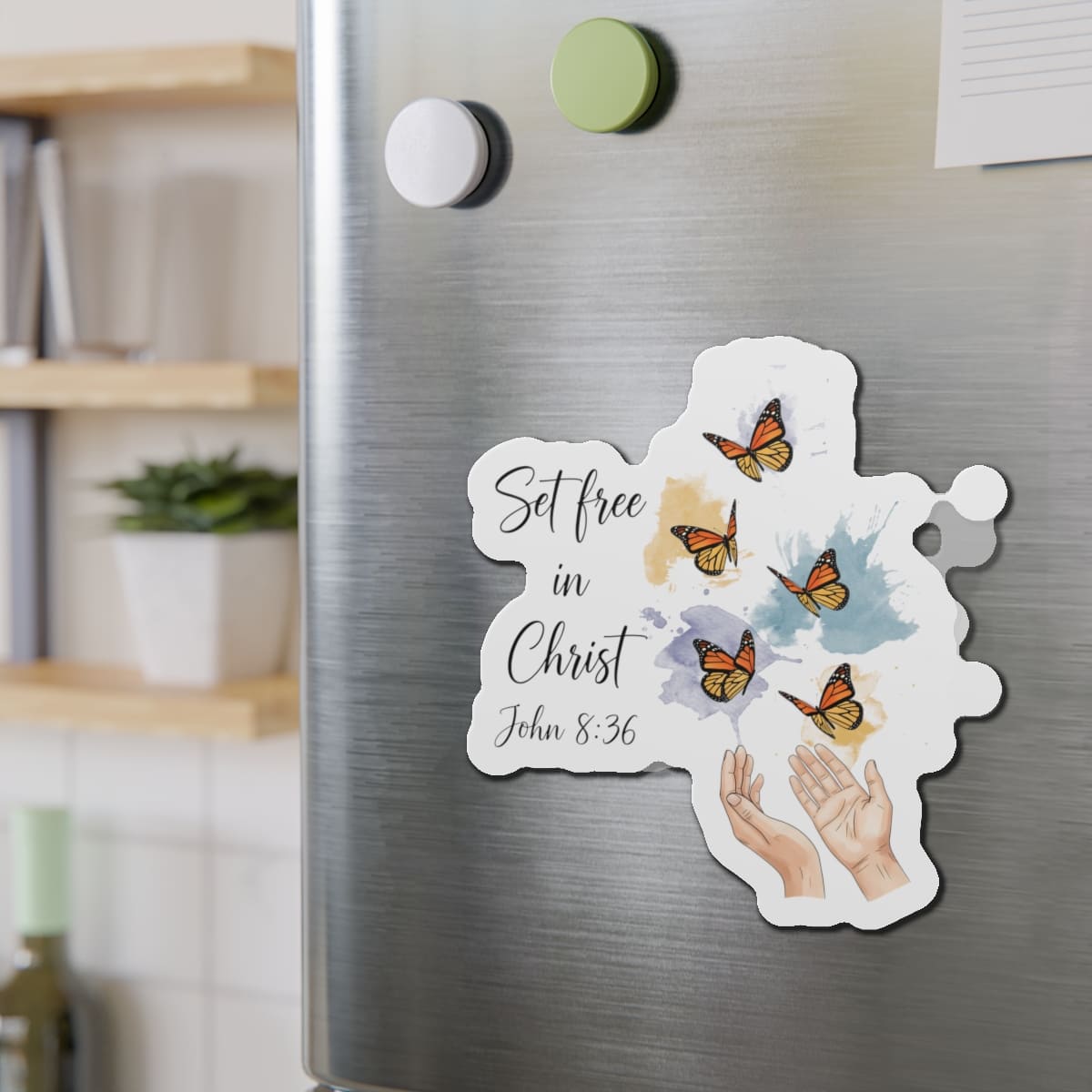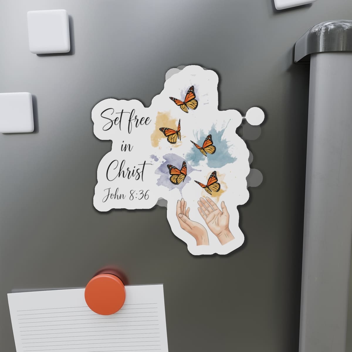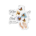 Inspire your day with this beautifully designed Christian sticker featuring the powerful Bible verse “Set Free in Christ – John 8:36.” With vibrant watercolor-style butterflies and prayerful hands, this faith-filled design is a daily reminder of God's freedom and grace.