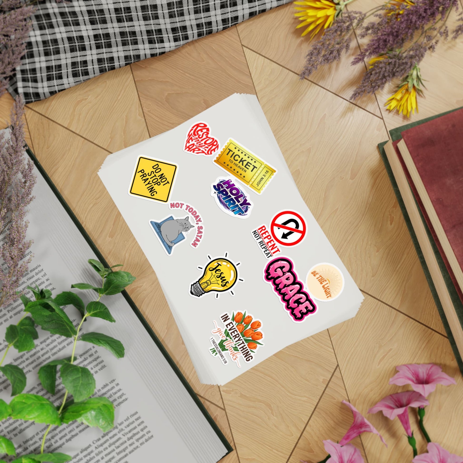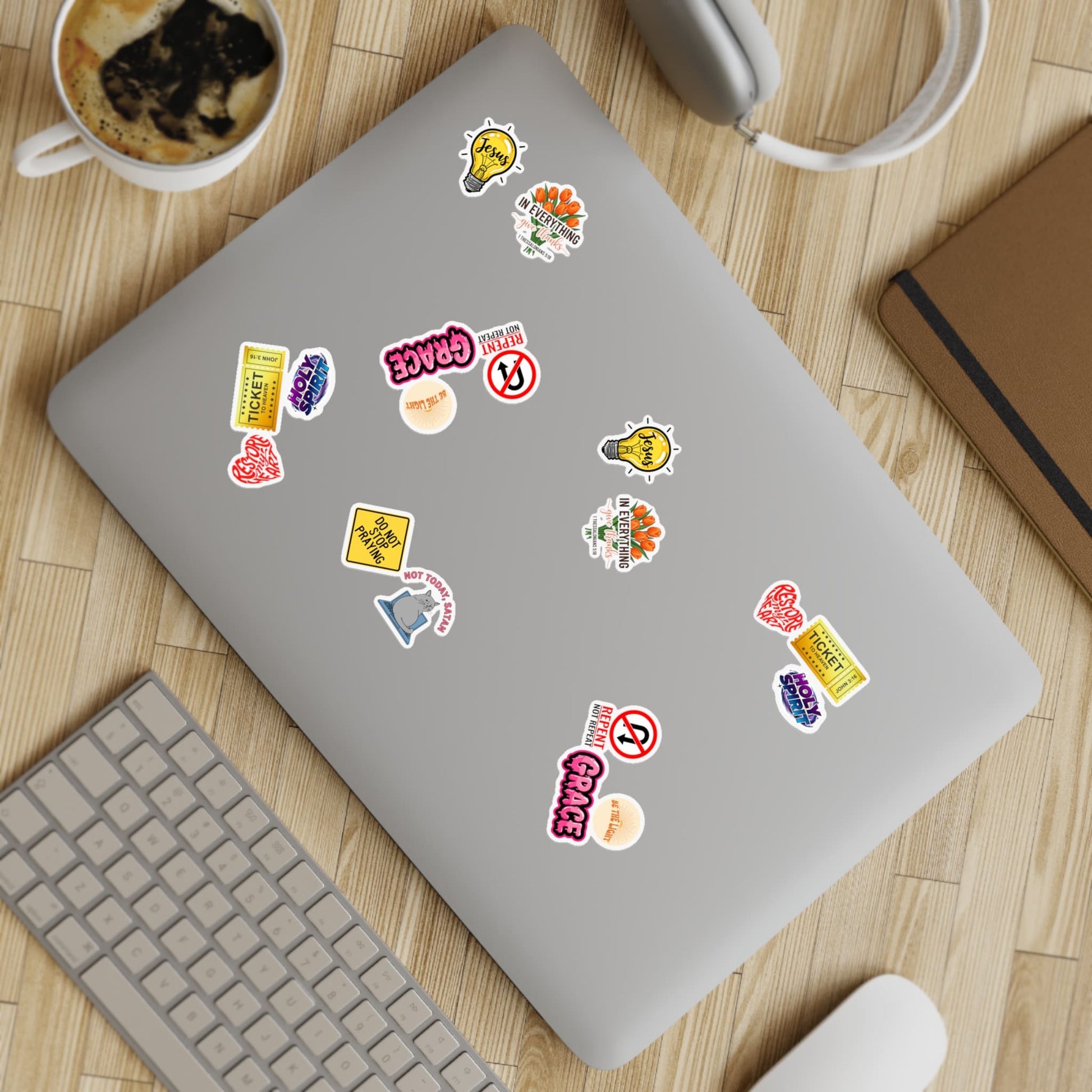 STK42 Christian Waterproof Vinyl Sticker Set – Inspirational Bible Verse Decals for Laptops, Water Bottles, Journals – Faith, Grace, Prayer, Holy Spirit Designs – 3 Inch Durable Stickers