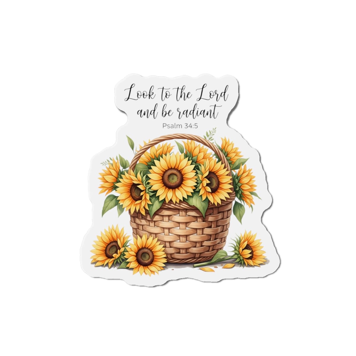 Brighten Your Day with Faith – Christian Sunflower Sticker (Psalm 34:5)