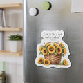 Let your faith shine with this beautiful Christian sticker featuring a joyful basket of sunflowers and the uplifting Bible verse: “Look to the Lord and be radiant” – Psalm 34:5. This inspiring faith quote vinyl decal is a daily reminder of God’s love and light.