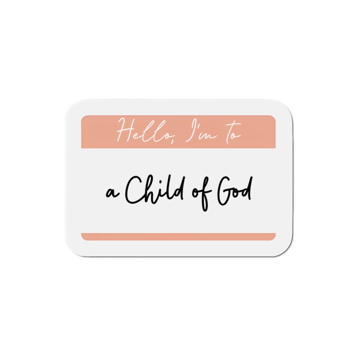 STK65 Child of God Name Tag Sticker – Christian Vinyl Faith Decal for Laptop, Water Bottle, Journal – Cute Hello My Name Is Design