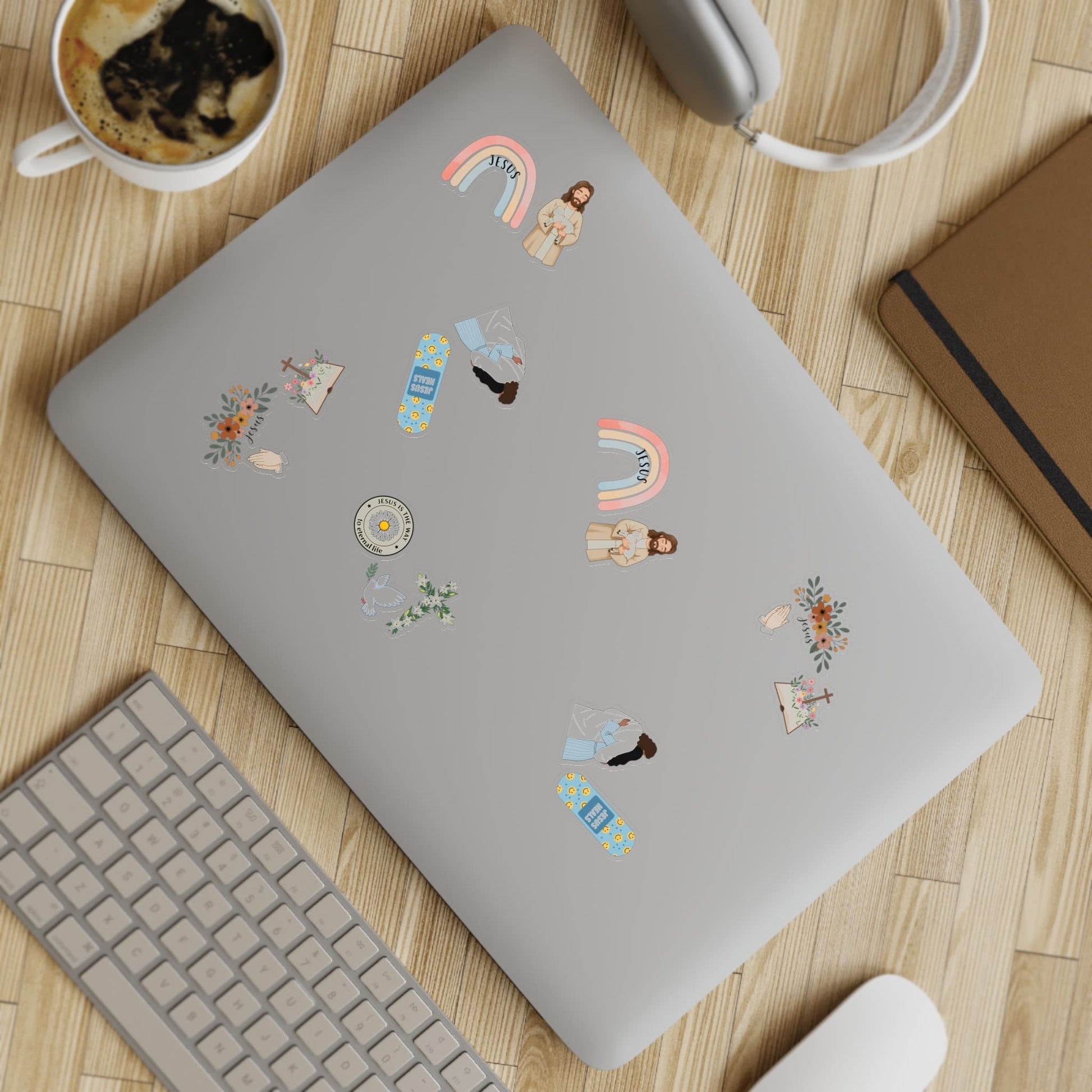 STK67 Christian Sticker Pack – Faith-Based Waterproof Vinyl Stickers for Laptop, Water Bottle, Bible Journal – Jesus Heals, Cross, Dove, Rainbow