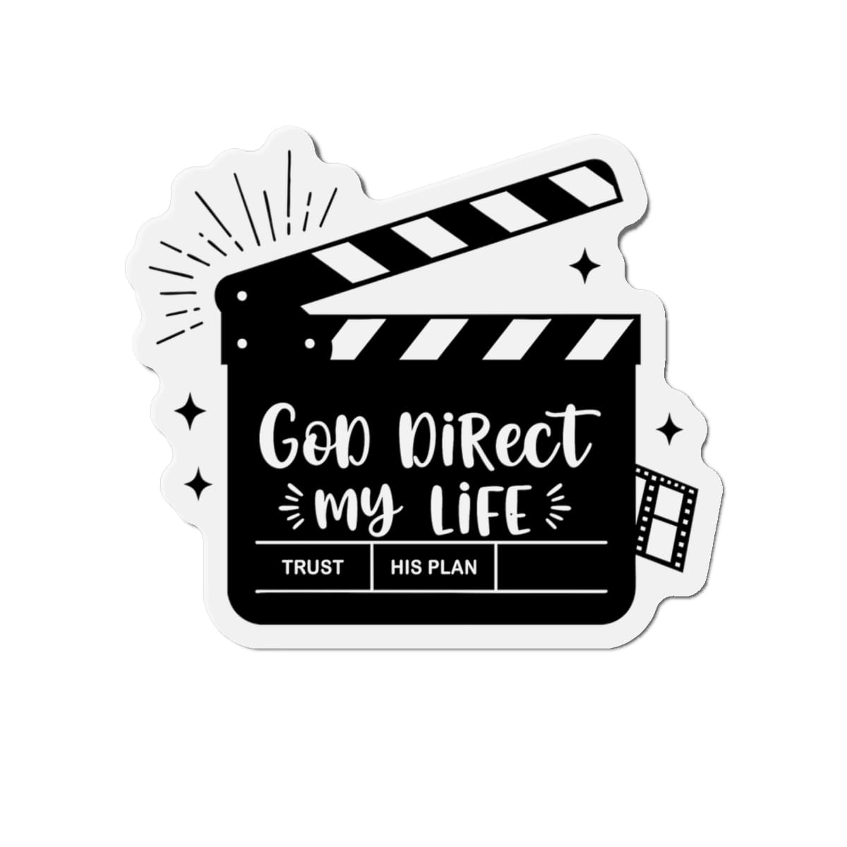 Let God be the director of your life with this inspiring Christian sticker that reminds you to trust His plan. Featuring a bold black-and-white film clapperboard design with the message “God Direct My Life”, this faith-filled decal is perfect for creatives, believers, and anyone walking in spiritual purpose.