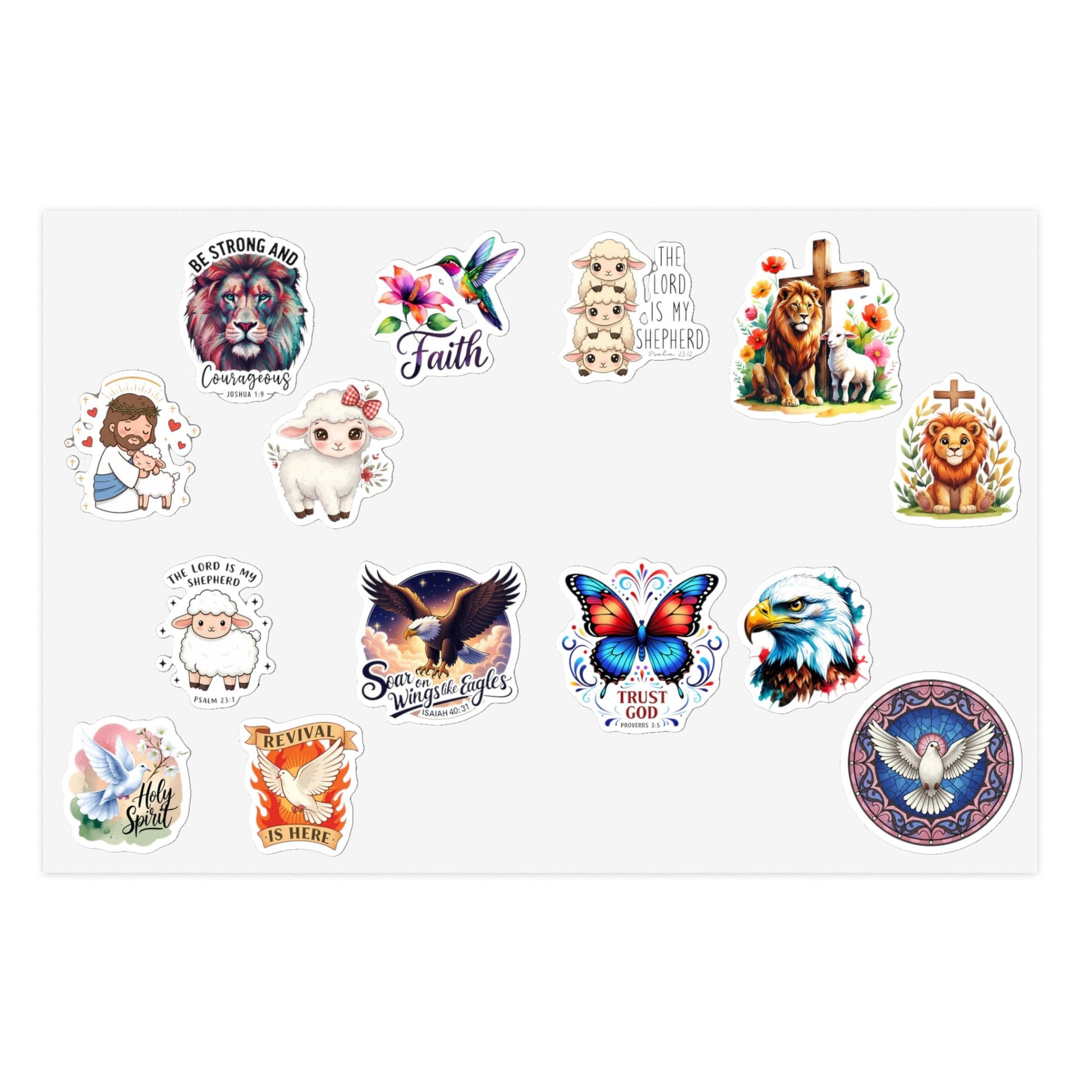 STK76 Christian Animal Sticker Pack – The Lord is My Shepherd, Trust God, Isaiah 40:31 Faith Vinyl Decals for Laptop, Bible, Water Bottle