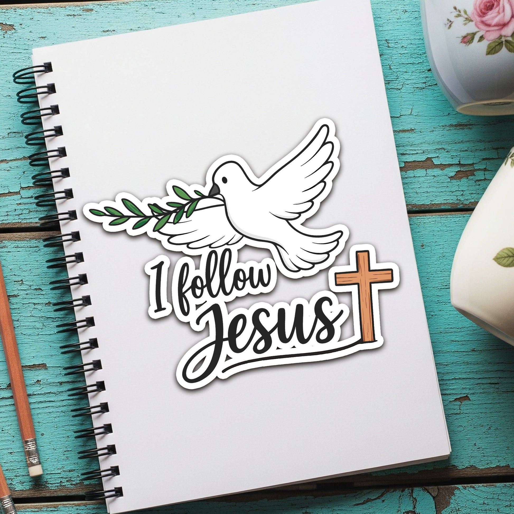 STK81 I Follow Jesus Christian Sticker – Waterproof Vinyl Faith Decal for Laptop, Water Bottle, Notebook – Dove and Cross Bible Verse Gift