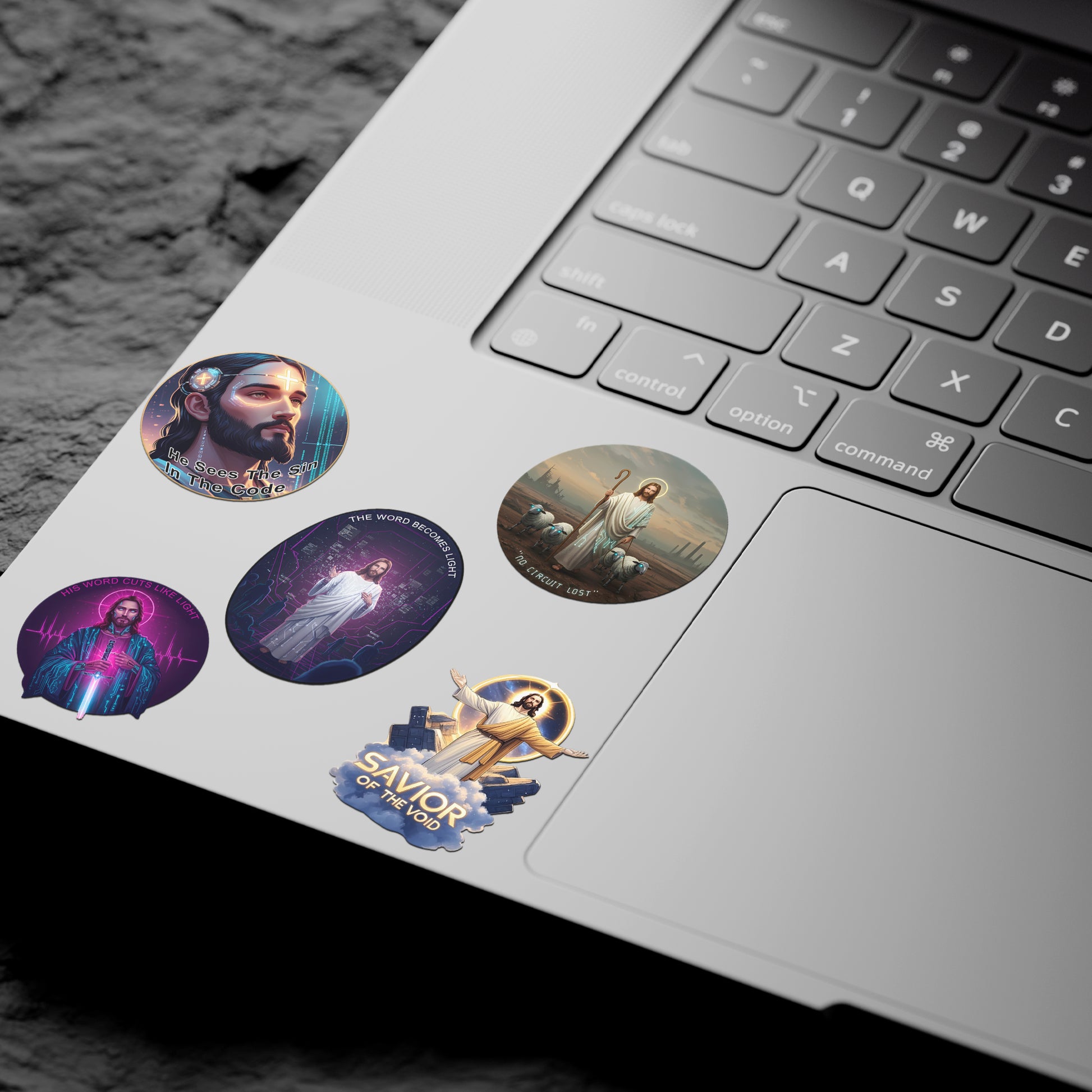 STK84 Christian Cyberpunk Jesus Stickers Pack – Futuristic Bible Verse Vinyl Decals – Waterproof Faith-Based Laptop and Water Bottle Stickers