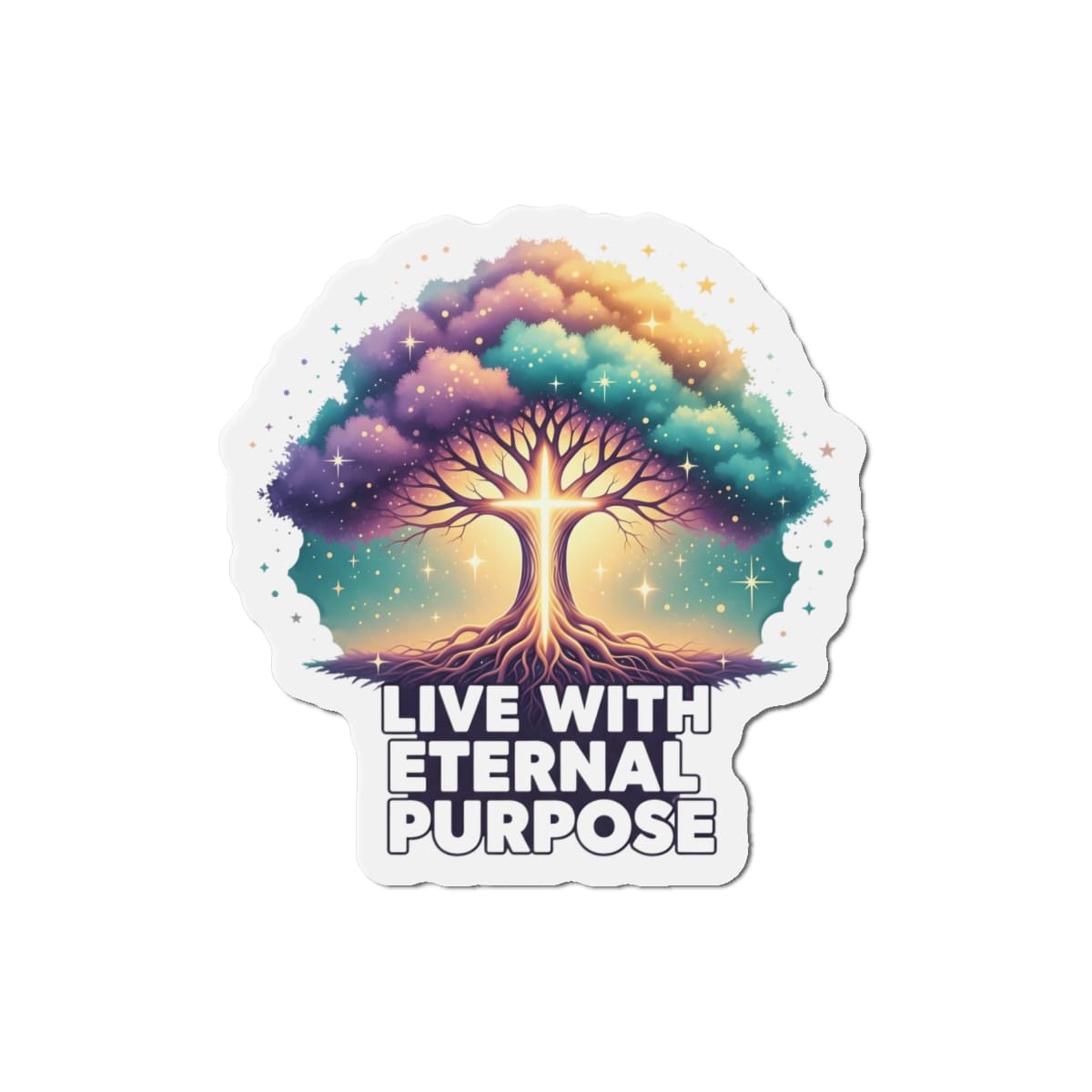 Let this Christian sticker remind you (or someone you love) to live with purpose rooted in eternity. Perfect for any surface that needs a little more faith and color.