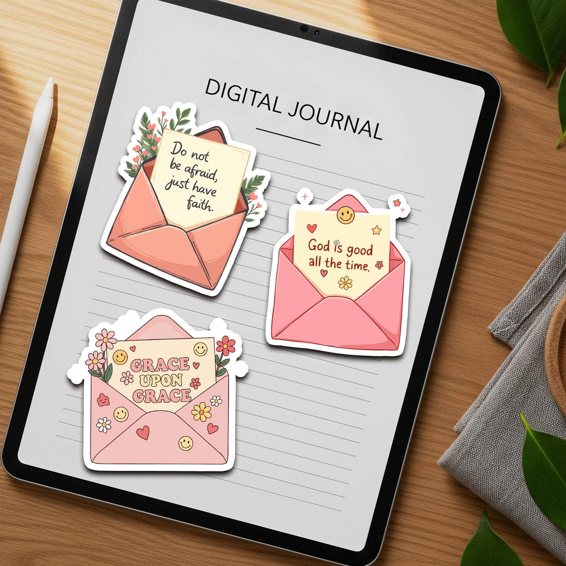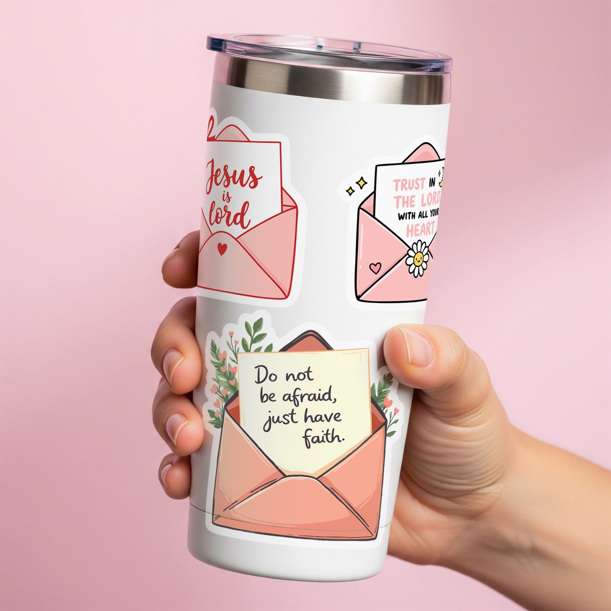 STK97 Christian Envelope Stickers – Faith Quotes Waterproof Vinyl Decals – Bible Verse Sticker Pack for Laptops, Journals, Water Bottles