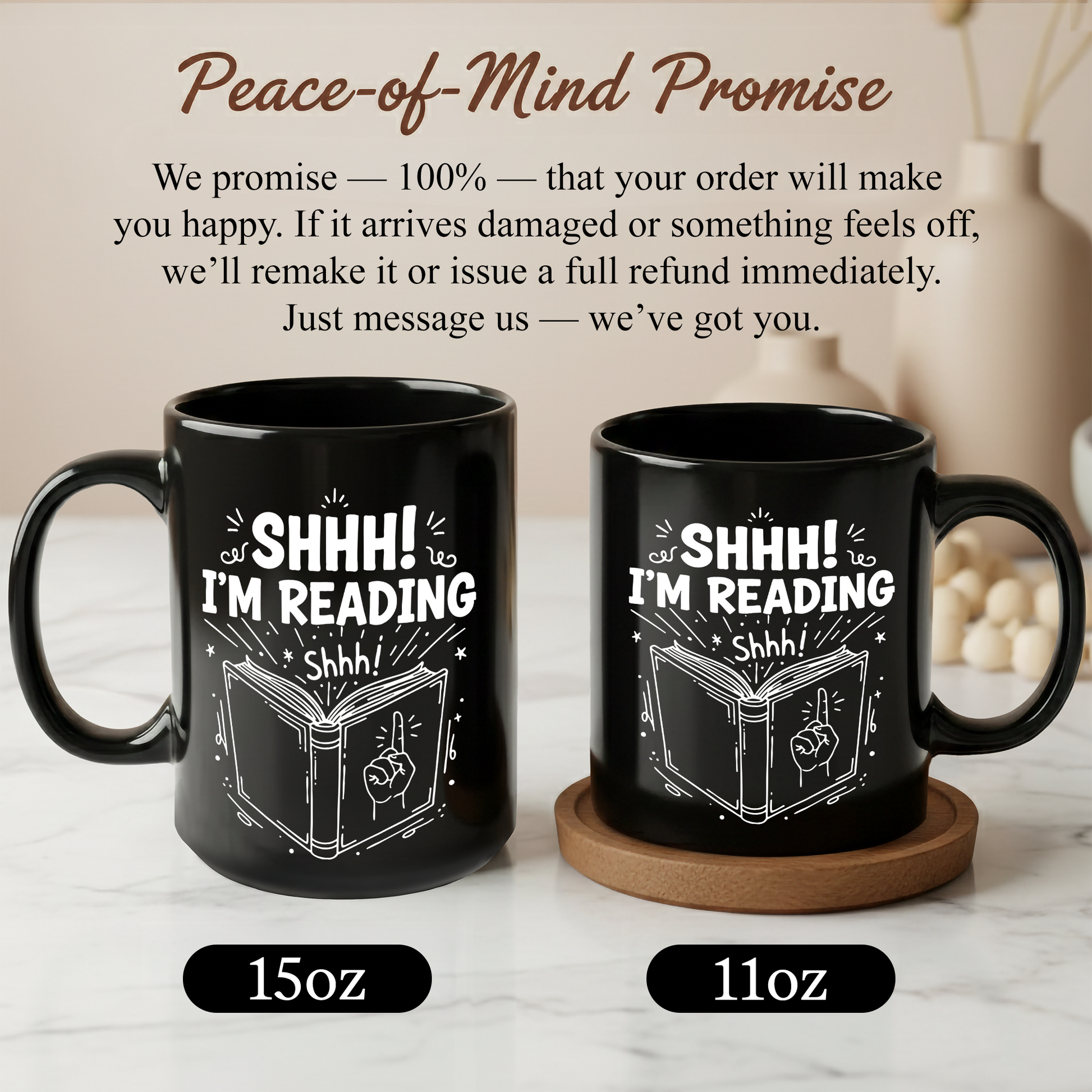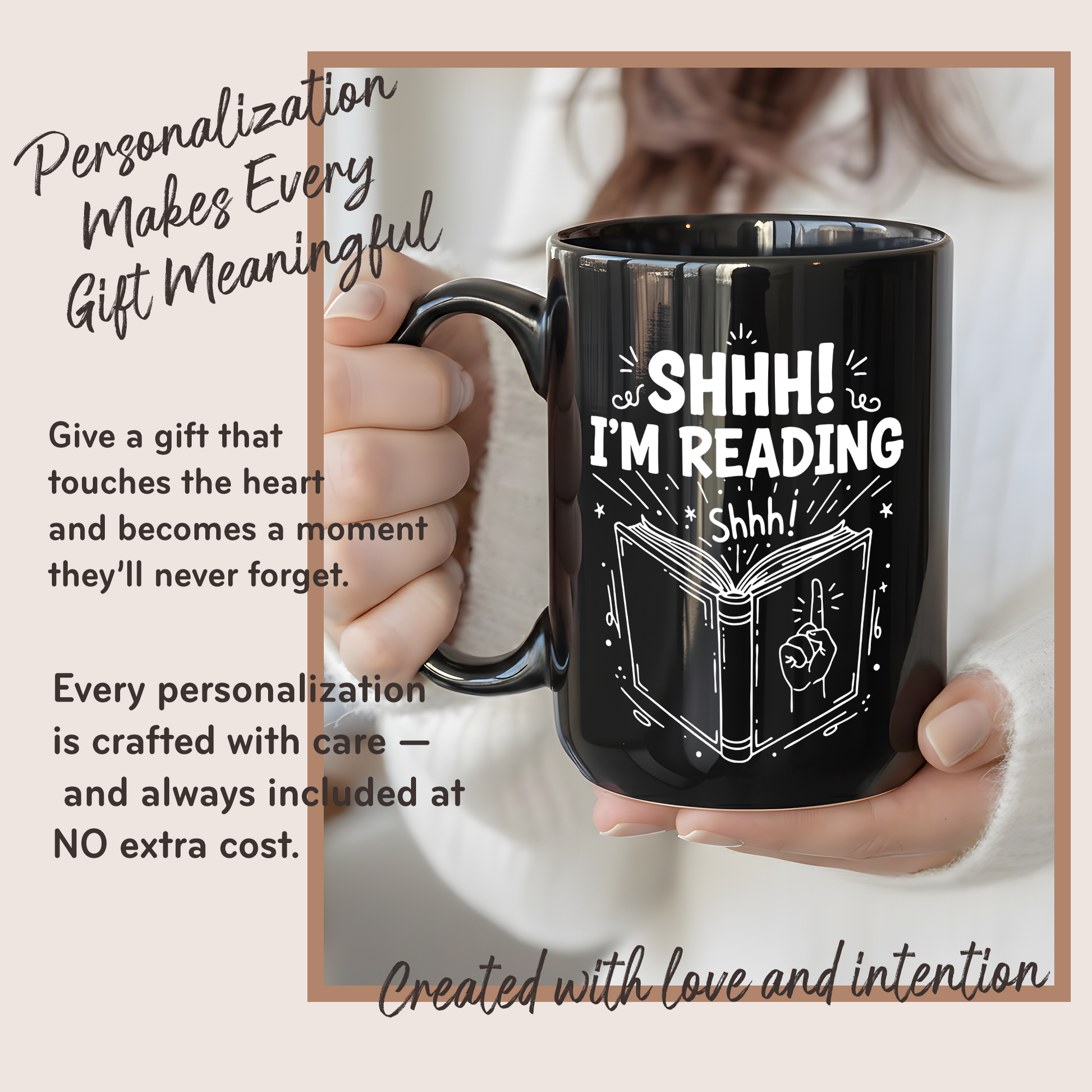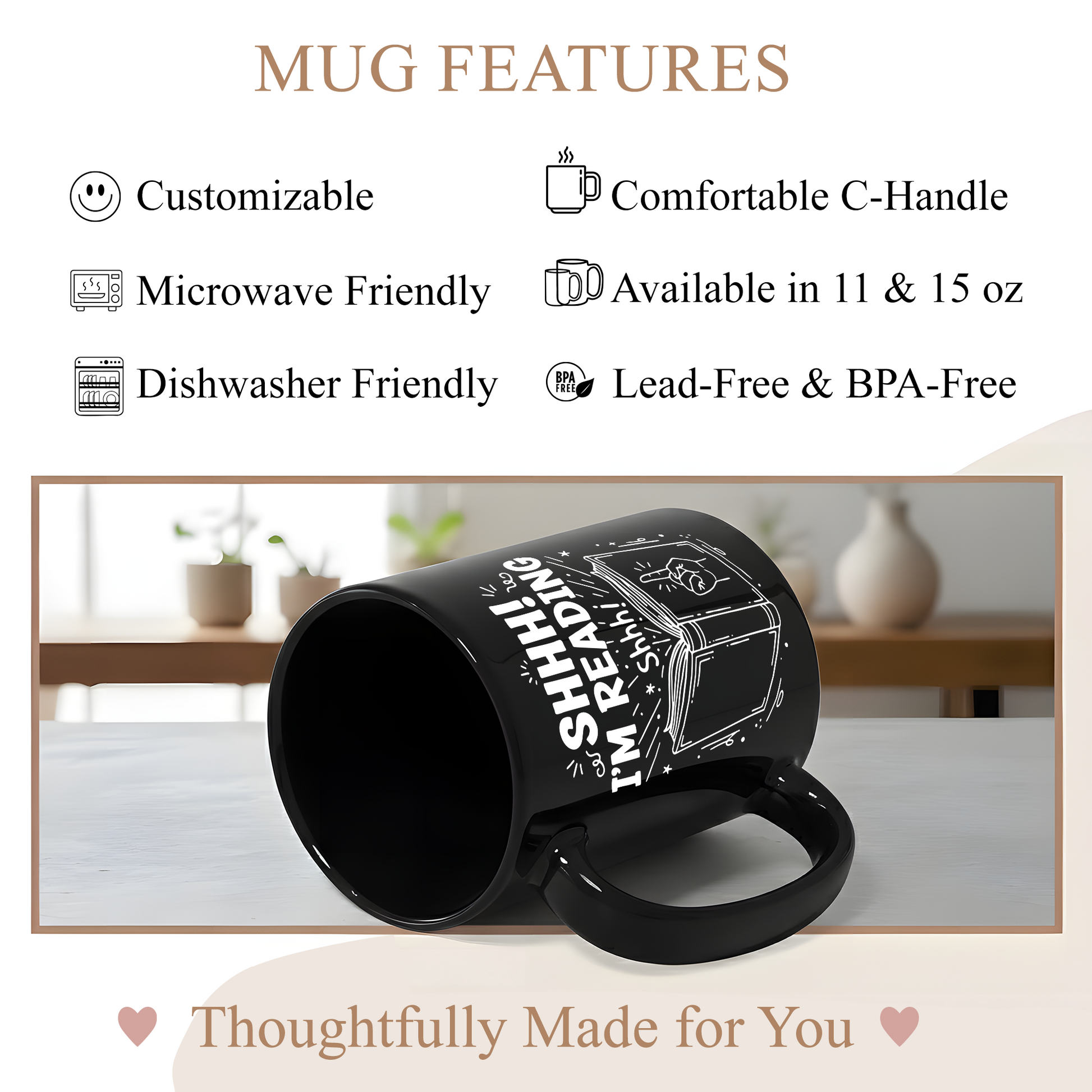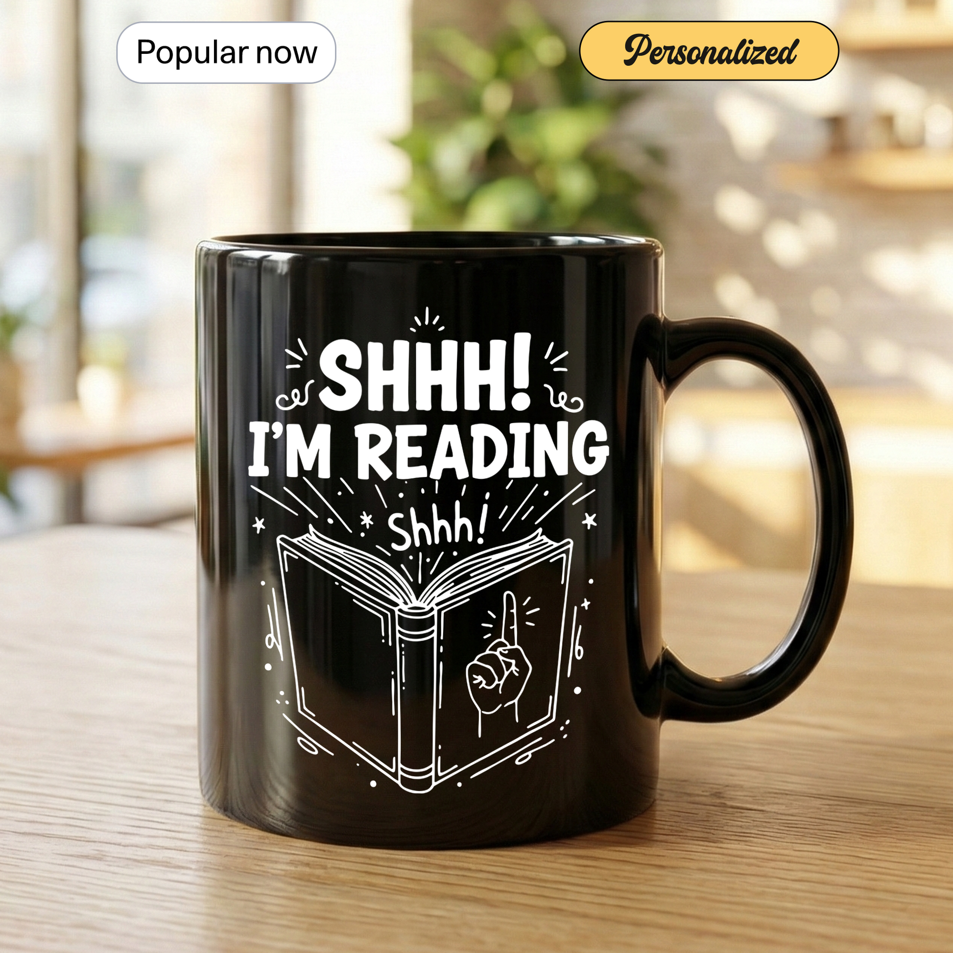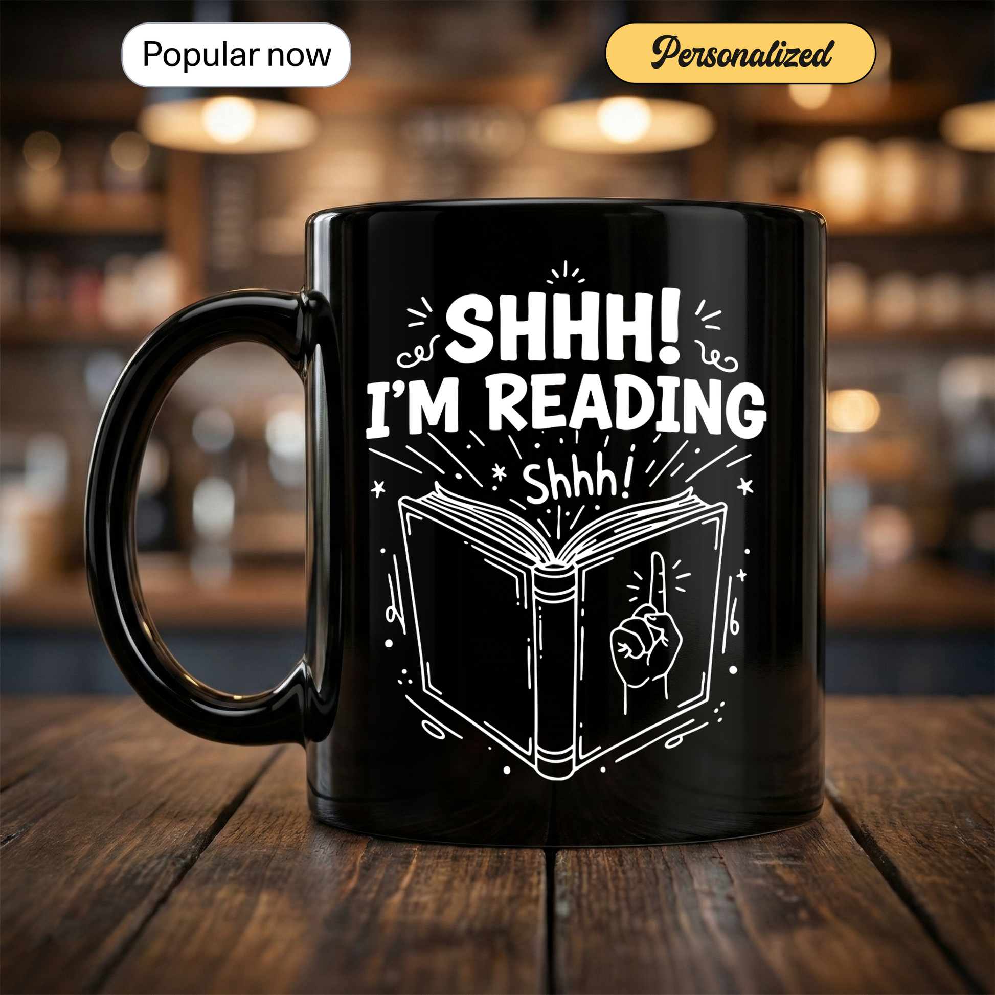 Shhh I’m Reading Coffee Mug | Best Book Lover Gift Idea | Funny Reading Cup for Avid Readers | Mug 113